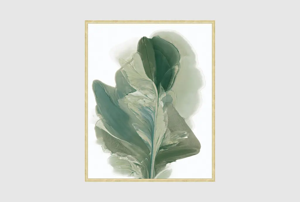 22x26 Green Flair Ii With Champagne Frame | Vertical | Botanical | Framed Art | Print