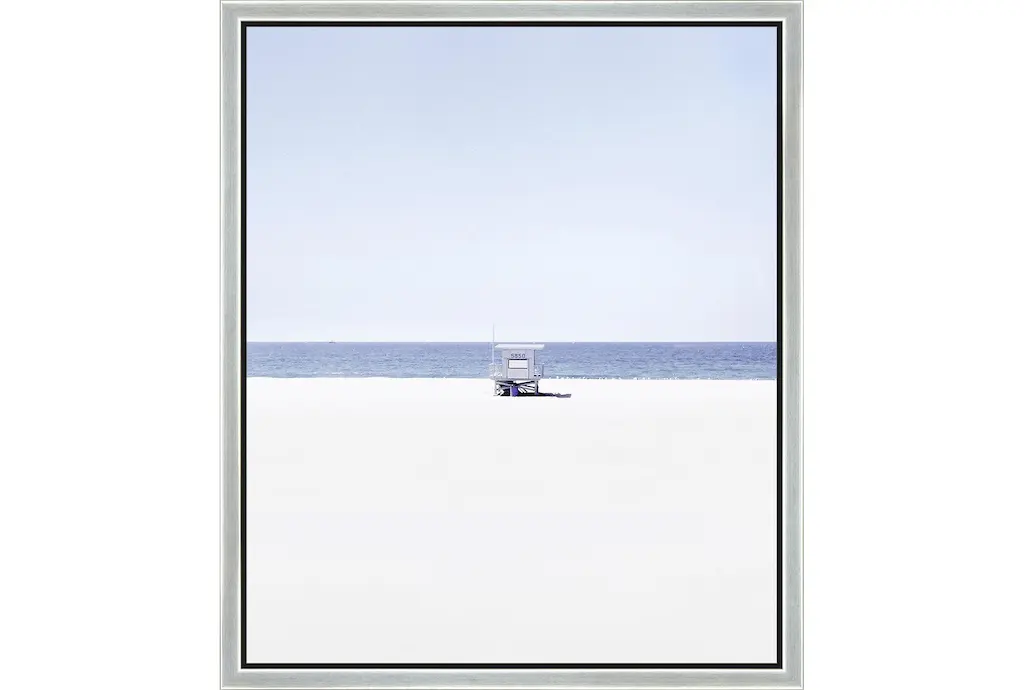 Enhance your living space with the 22X26 Perfection With Birch Frame. This modern framed canvas art features a serene coastal scene in blue and white, perfect for adding a touch of tranquility to any room.