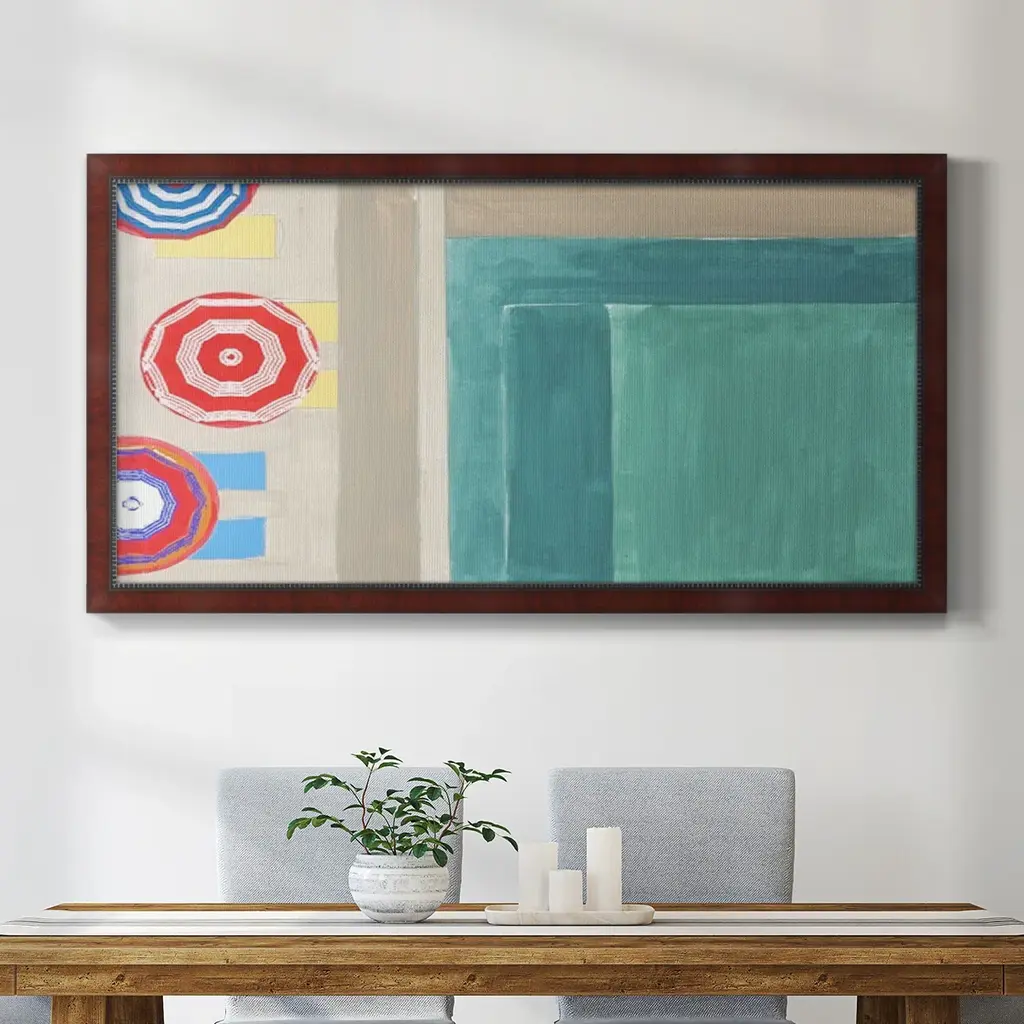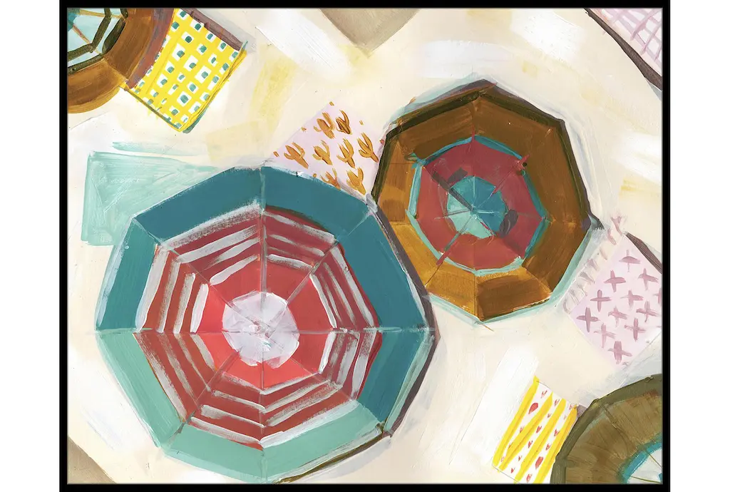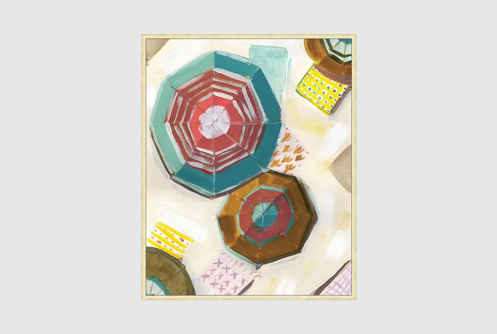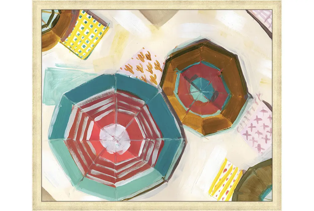 Bring a touch of coastal charm to your home with this 22x26 rectangle artwork featuring vibrant umbrellas. The vertical orientation and multicolor design make it a standout piece on any wall. Made in the USA, this framed art is perfect for adding a summery vibe to your decor.