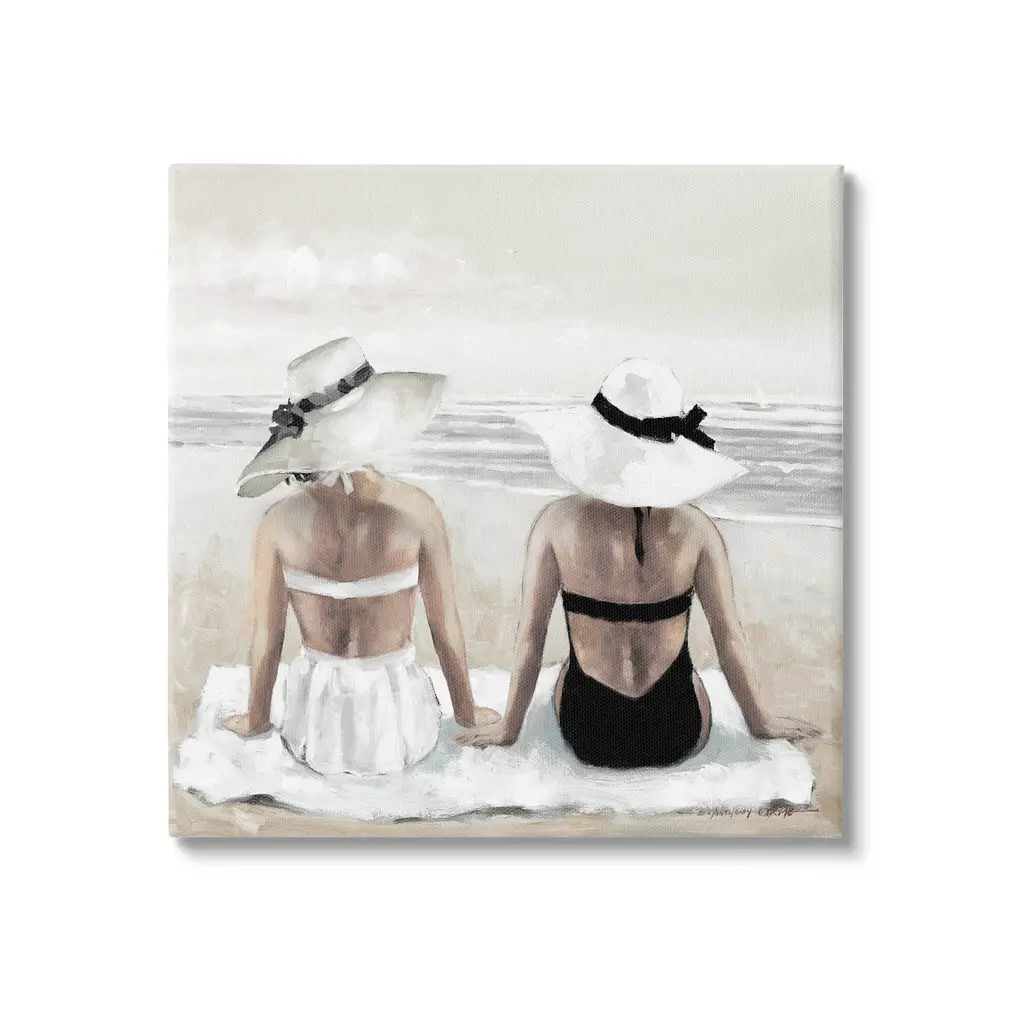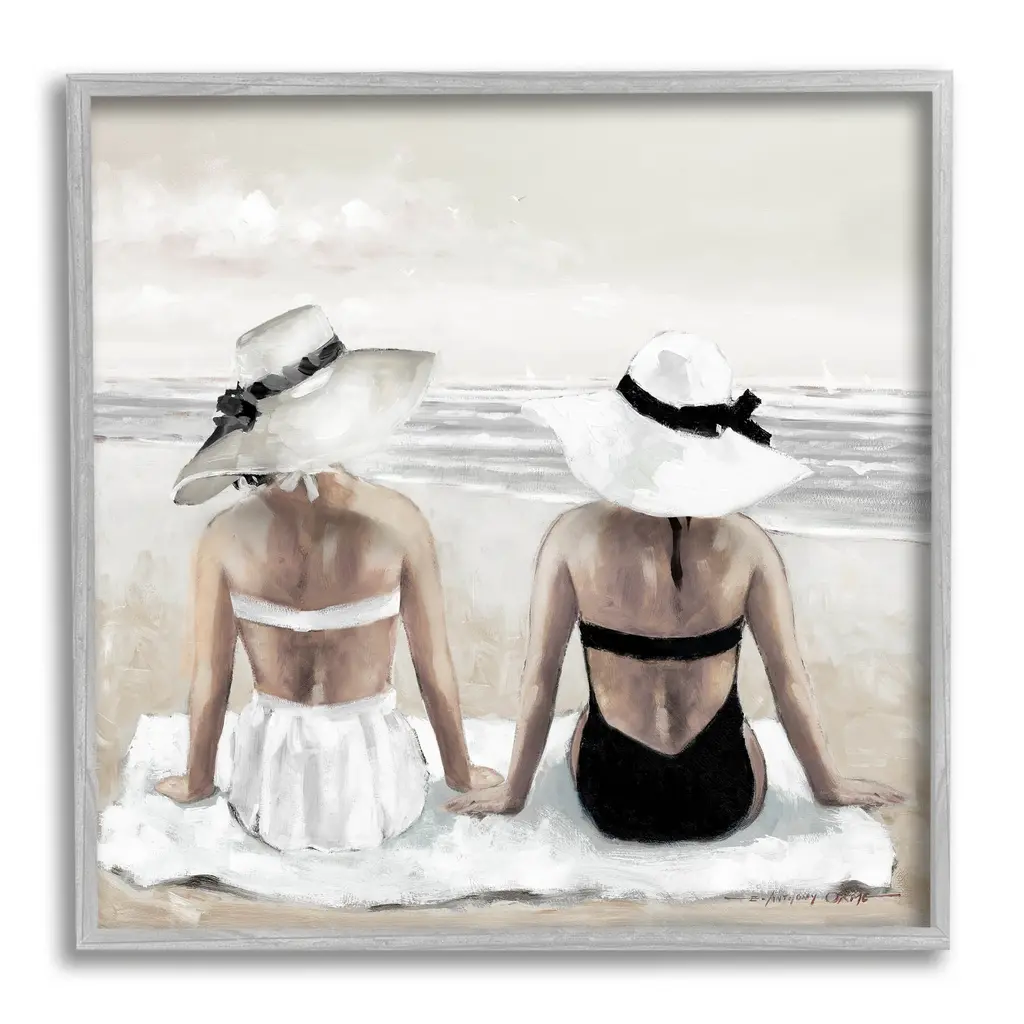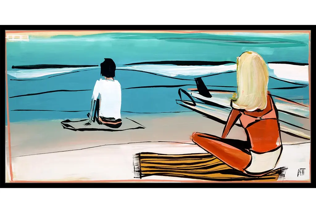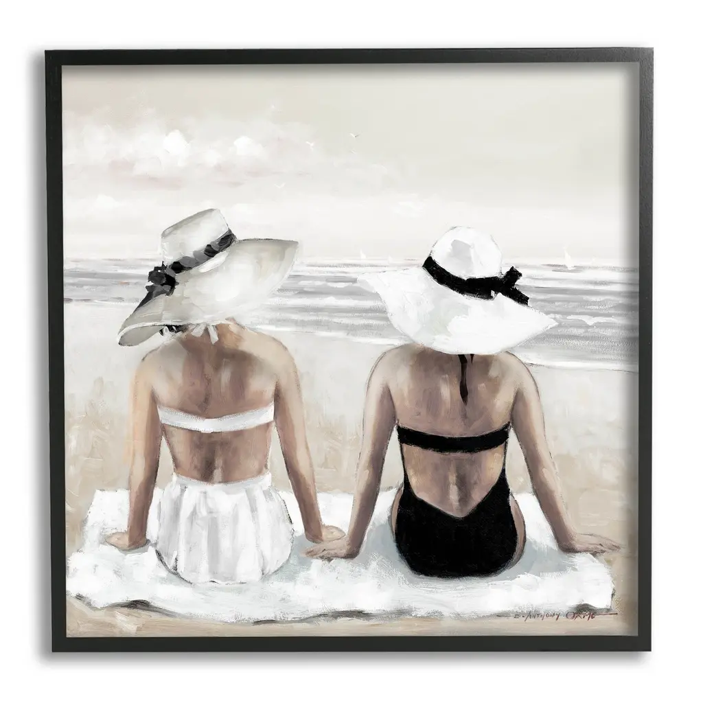 22"x42" Modern Beach Day With Black Floater Frame | Scenic | Print | Framed Canvas Art | Horizontal