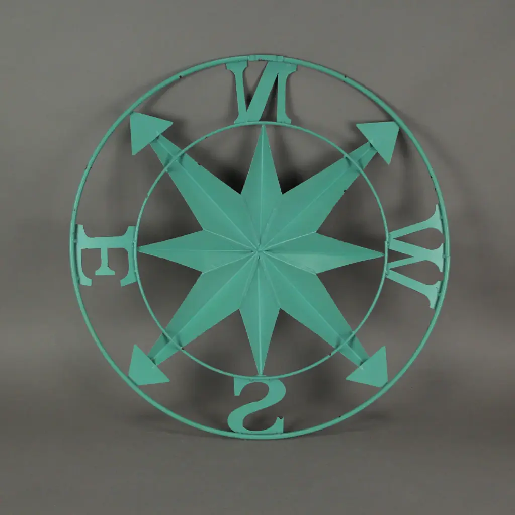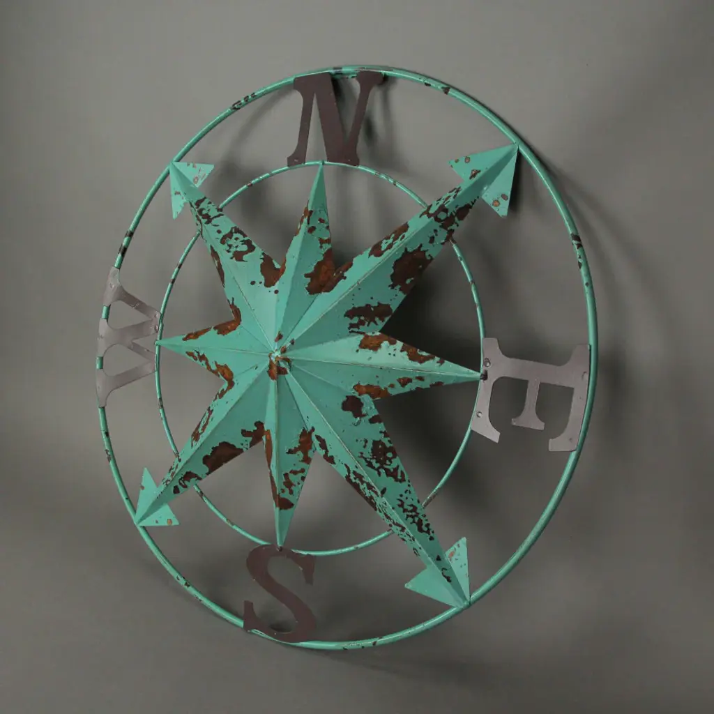 OVERALL SIZE - 23.75 Inches In Diameter, 2.5 Inches in DepthDURABLE MATERIAL - Creatively Crafted From Metal For A Sturdy SculptureRUSTIC LOOK - Distressed Matte Finish Creates An Aged Look with a Wonderfully Weathered AppearanceDISPLAY ANYWHERE - Display On Any Indoor or Outdoor WallVERSATILE DECOR - Looks Great in Any Room and Brings a Touch of Nautical Styling to Any Home DecorGive your home decor a new direction with this wonderful nautical compass rose wall hanging, featuring a three-dimensional center design, and a distressed turquoise finish that gives it a vintage look. The wall hanging measures 23.75 inches in diameter with a depth of 2.5 inches. Sporting a built-in saw-tooth hanger, it easily hangs on walls with a single nail or screw, and can be displayed indoors or outdoors. It''s a perfect accent to any vintage decor.