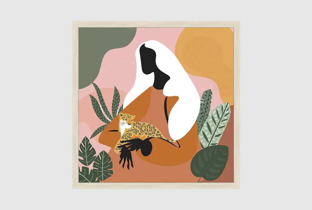 24x24 Modern Jungle Ii Square Animal Print | Black Frame | Framed Art | Abstract | Made In The Usa
