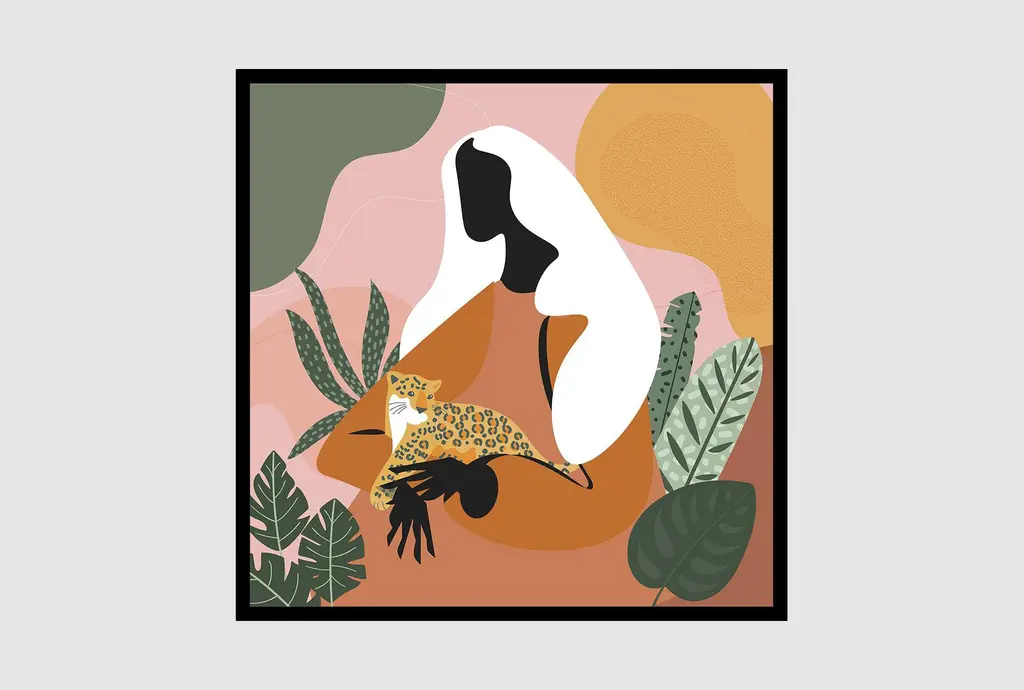Bring a touch of the wild into your home with the 24x24 Modern Jungle II Square Animal Print. Featuring a striking combination of orange, green, and white tones, this framed art piece is perfect for adding a modern and vibrant flair to your space. The black frame adds a sophisticated finish to this abstract representation, making it a standout piece in any room.
