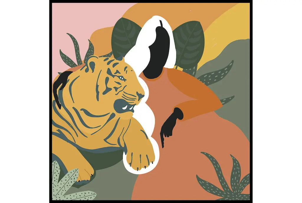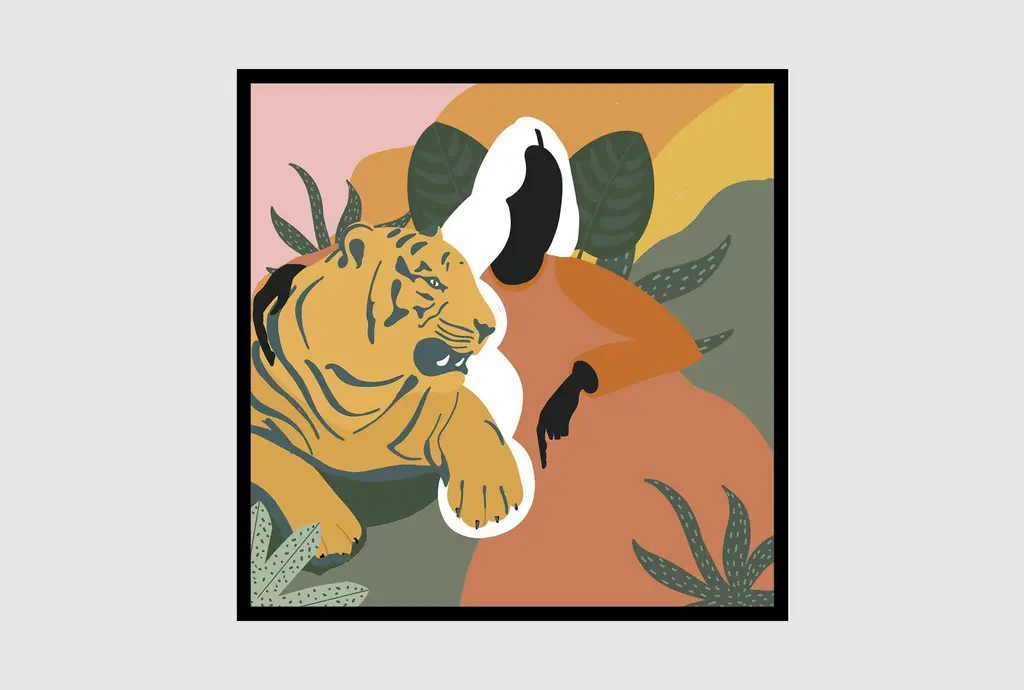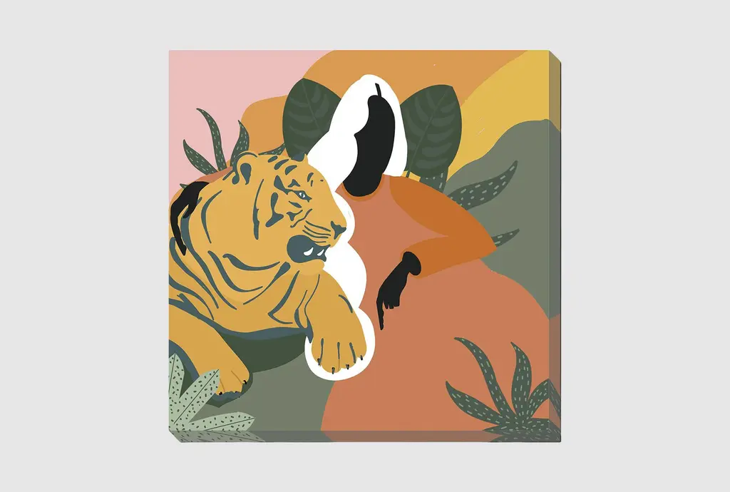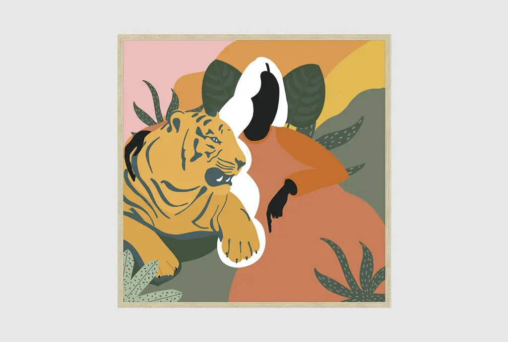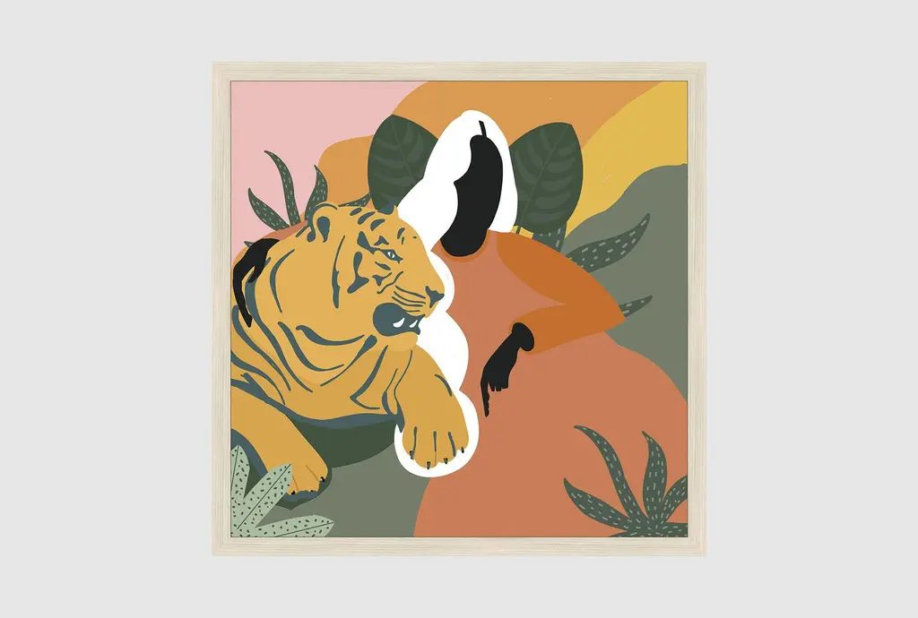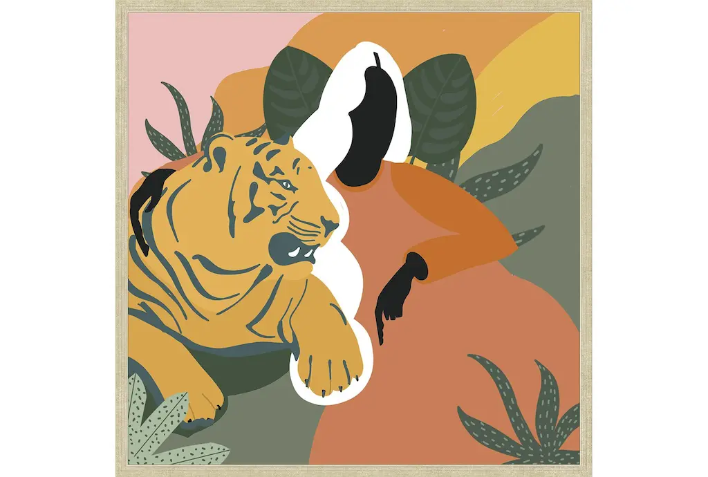 Introducing the 24X24 Modern Jungle II with Champagne Frame, a stunning piece of framed art that brings a vibrant touch to your home decor. This eye-catching print features a striking combination of orange, green, and white hues, making it a perfect addition to any modern space. Crafted on canvas and framed with high-quality materials, this square artwork is made in the USA and is sure to be a conversation starter in any room.