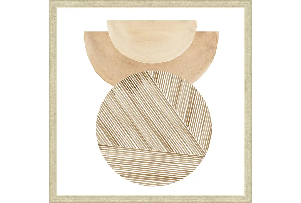 Enhance your living space with the 24X24 Overlap Moon Terracotta II With Washed White Frame. This modern, abstract framed art piece features a natural color palette that complements any decor. Made in the USA, this square canvas print is perfect for adding a touch of contemporary style to your home.