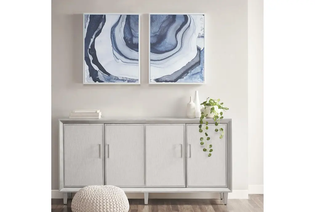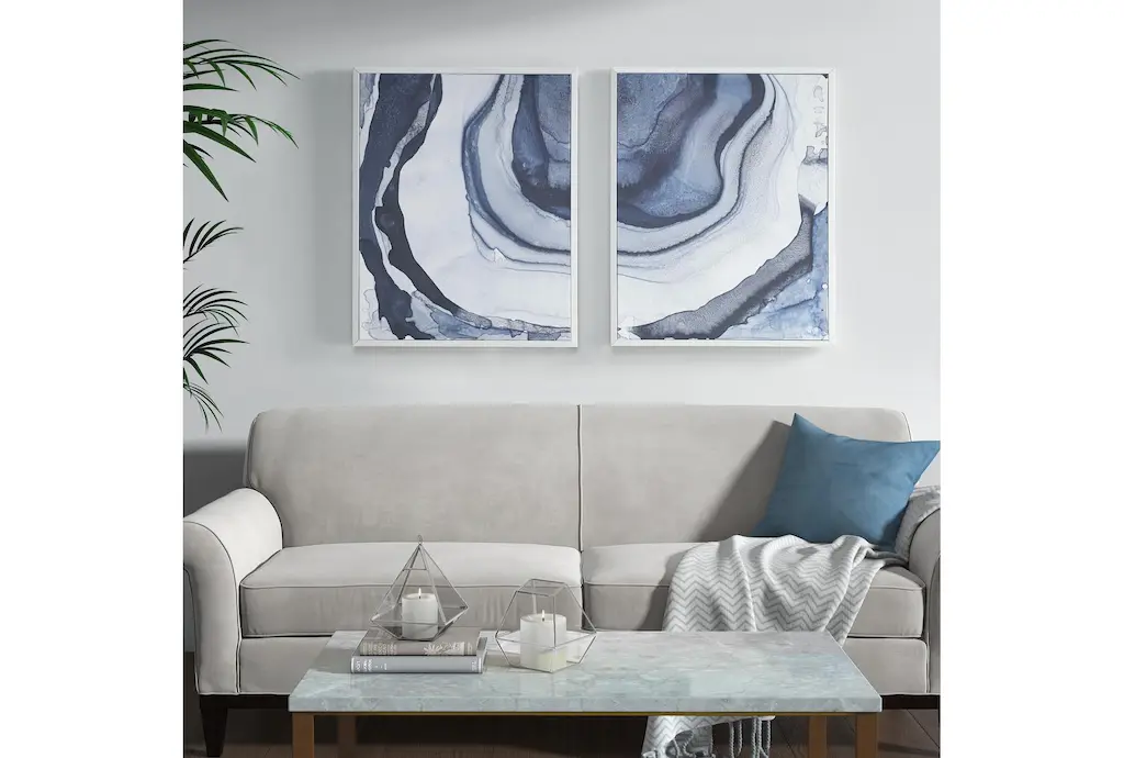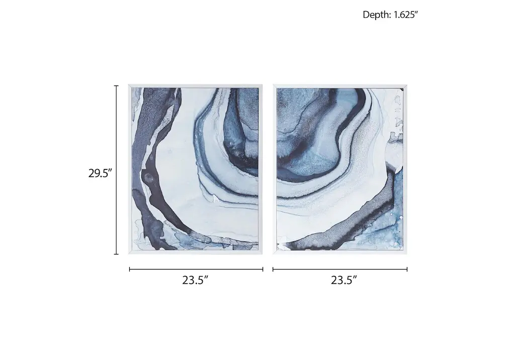 Enhance your living room with the 24X30 Blue Ethereal Set Of 2 framed abstract art prints. These modern pieces feature captivating blue hues and nonobjective designs, perfect for adding a contemporary touch to your space. The vertical orientation and rectangular shape make them ideal for small spaces.