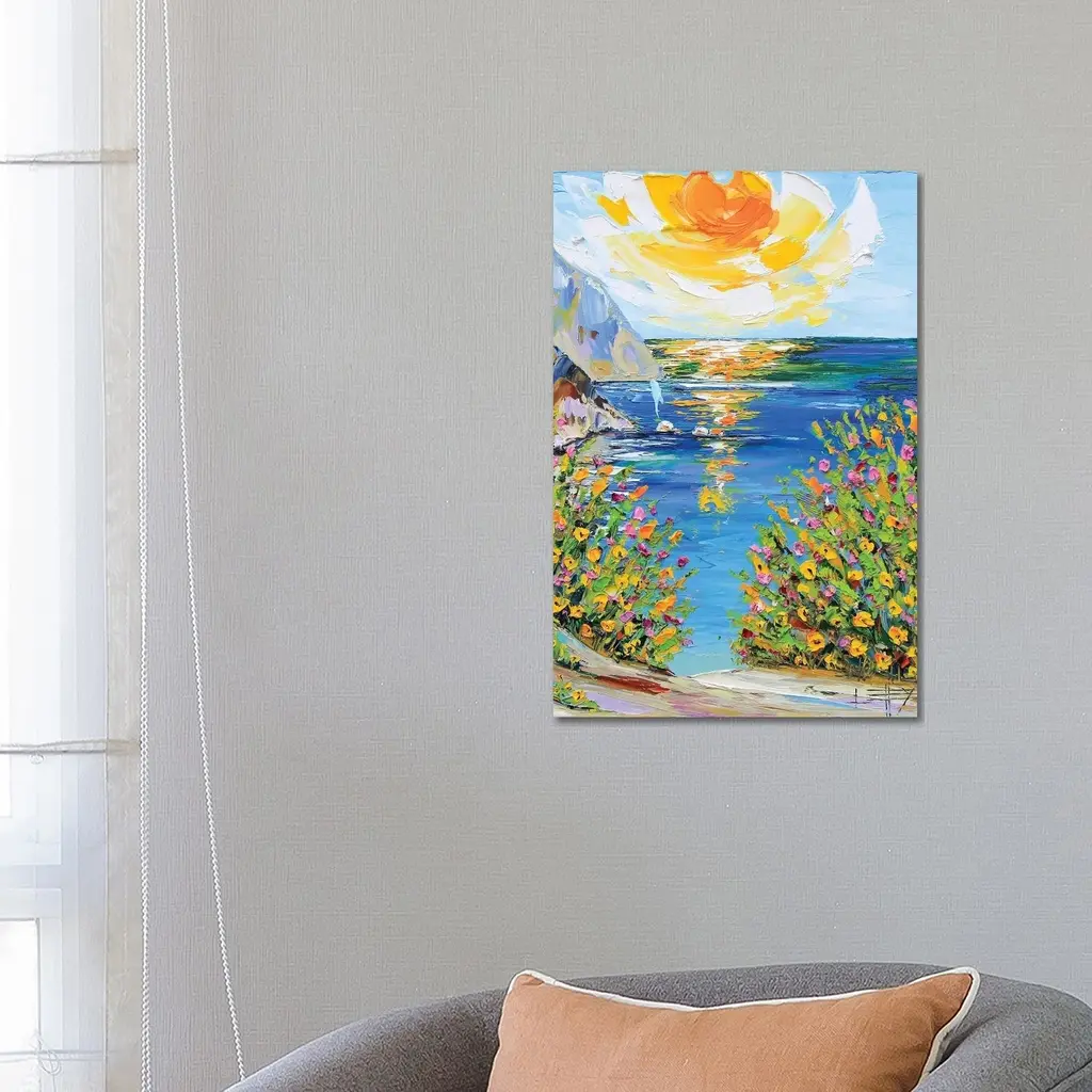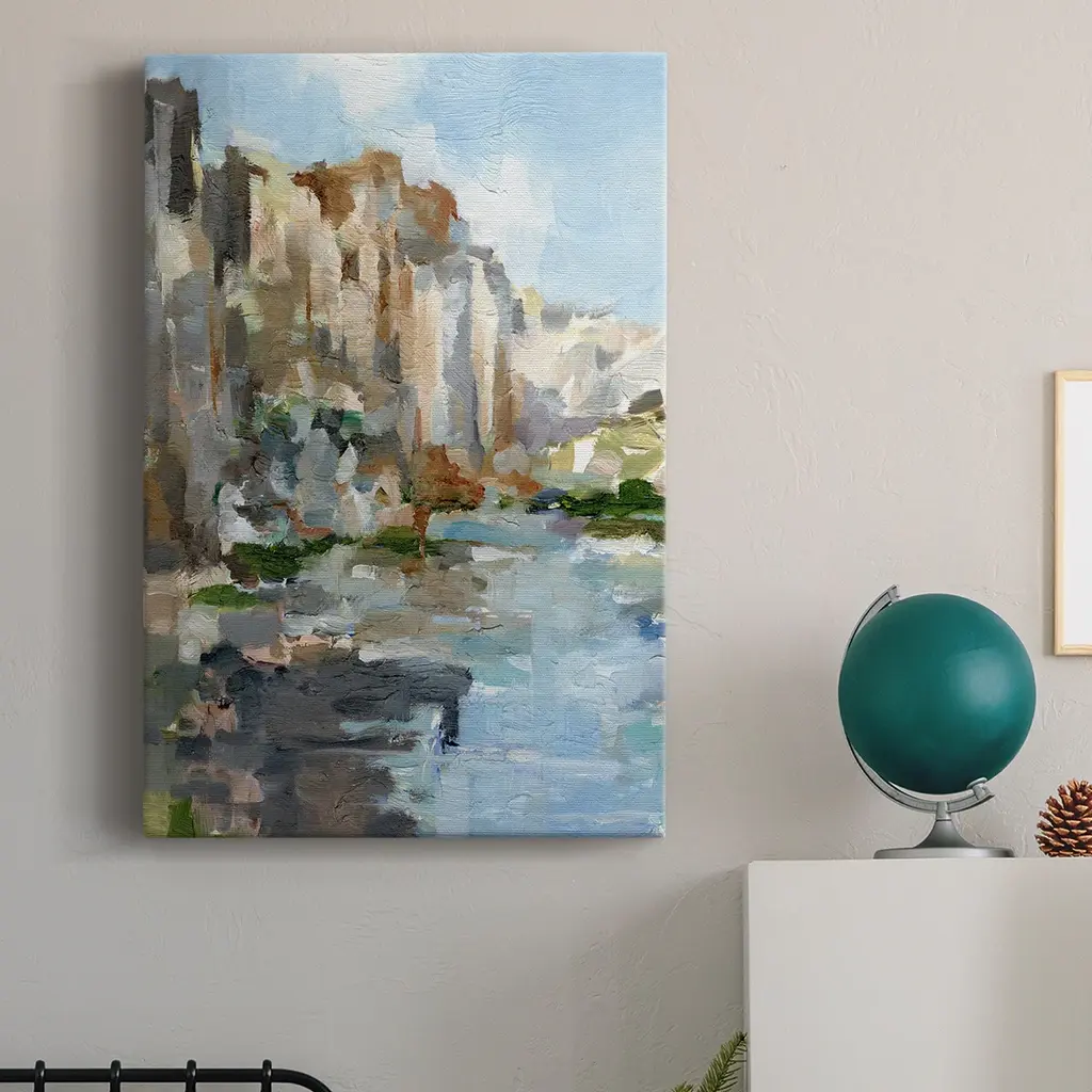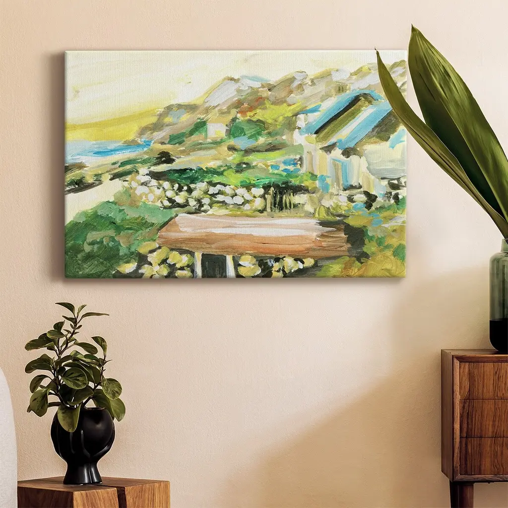 Bring the beauty of the Amalfi Coast into your home with the 24X36 Amalfi Coast II With Gallery Wrap. This vertical scenic print on canvas art captures the vibrant colors and serene landscape, making it a perfect addition to your decor. Its frameless design enhances the contemporary feel while showcasing the stunning coastal scene.