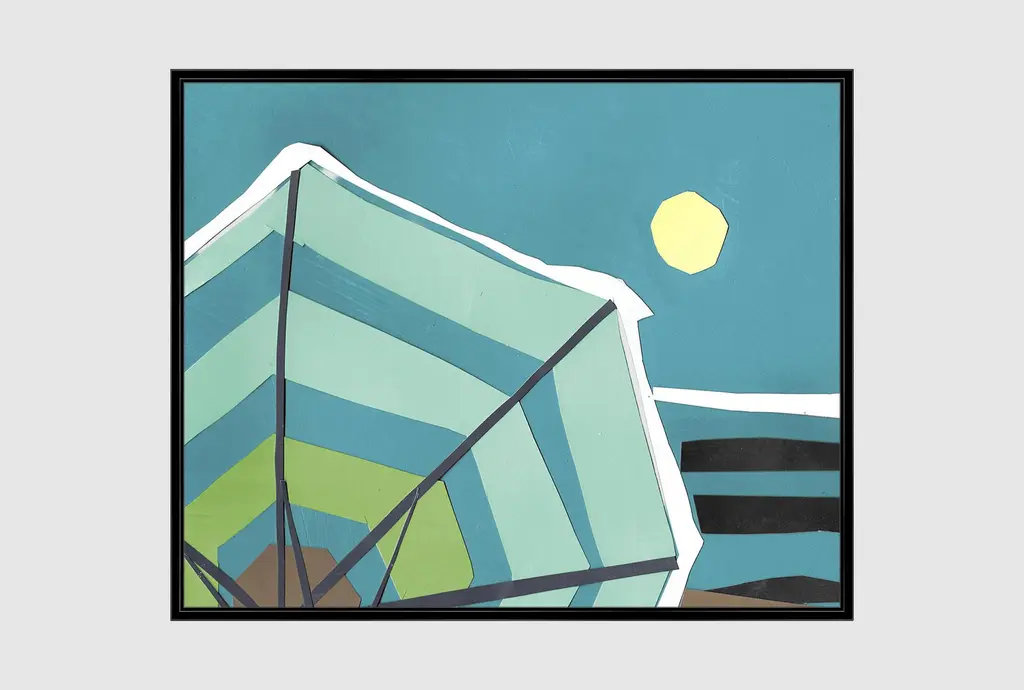 26x22 Beach Umbrella With Birch Frame | Made In The Usa | Framed Art | Print | Horizontal