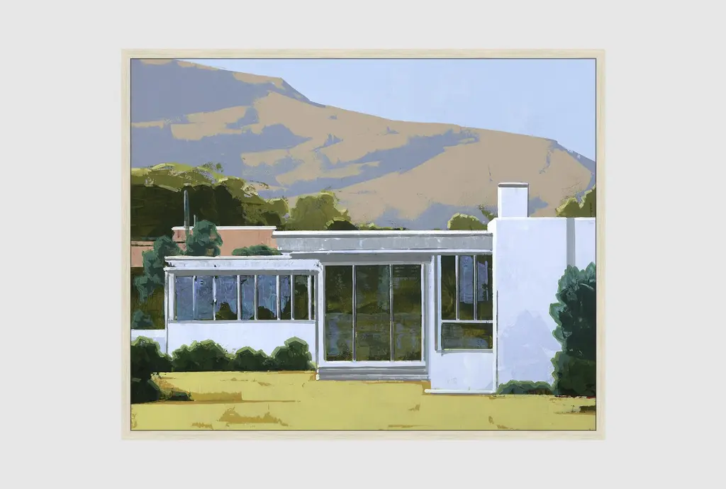 Enhance your living space with the 26X22 Desert Estate Rectangle Black Frame. This modern, multicolor print captures a serene place with hyperrealistic detail, perfect for adding a touch of sophistication to any room. Proudly made in the USA, this framed art piece combines quality and aesthetic appeal with its horizontal orientation and rectangle shape.