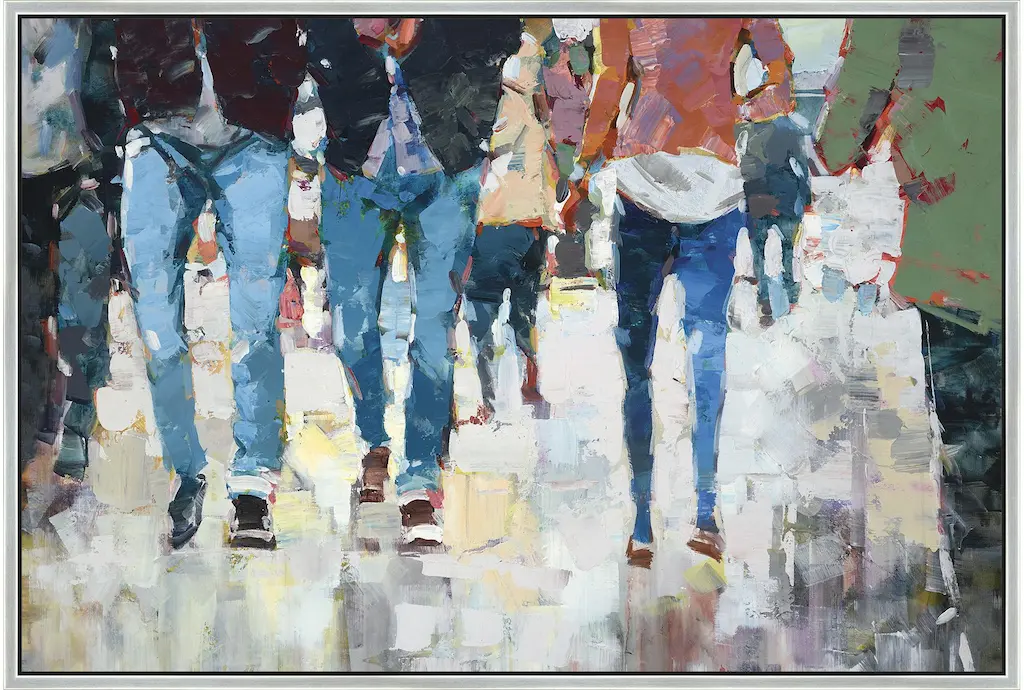 Bring a lively touch to your space with the 26X22 Hustle And Bustle With Black Frame. This captivating piece features a modern depiction of people in motion, rendered in blue, black, and white hues. Perfect for adding a dynamic element to any room, this artwork is made in the USA and comes framed for easy display.