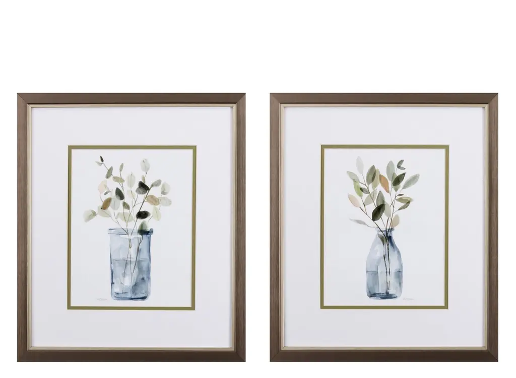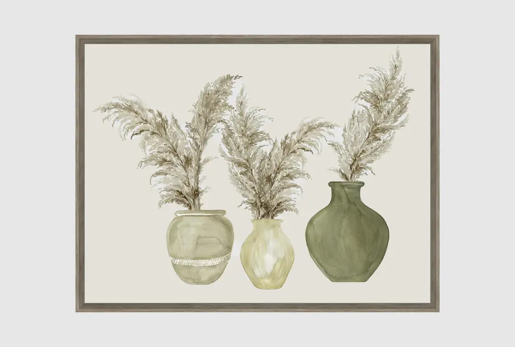 26x22 Pampas Botanical In Green Pots | Walnut Frame | Rectangle | Framed Art | Print | Made In The Usa | Horizontal