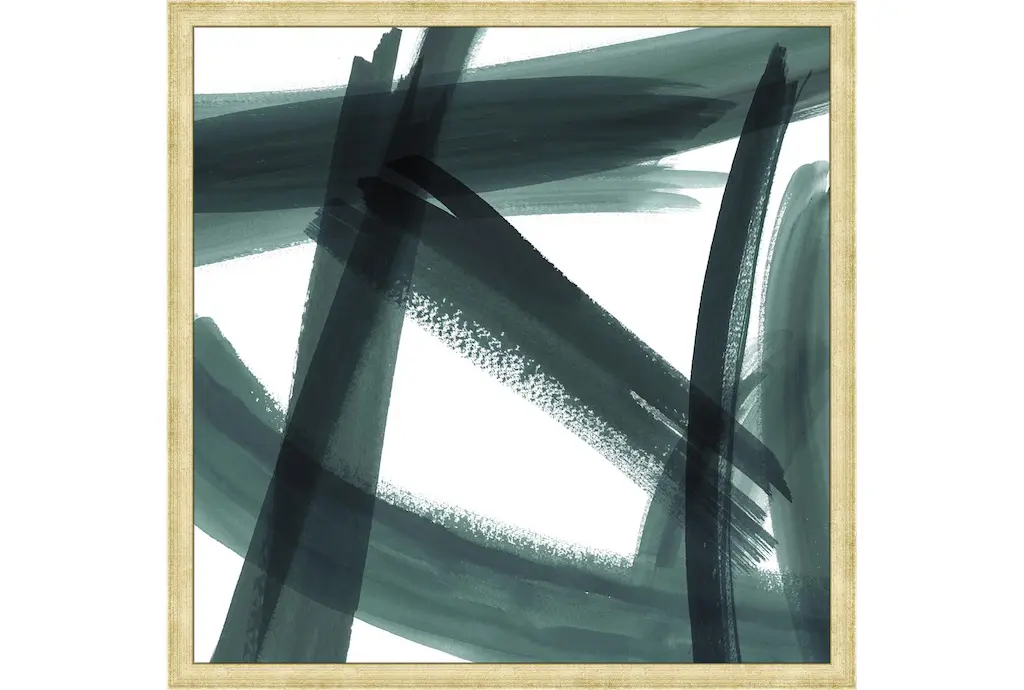 Enhance your office with the captivating 26X26 Abstract Green Brush Strokes I With Bronze Gold Frame. This modern piece features bold teal and white brush strokes on a durable canvas. Proudly made in the USA, this artwork is encased in a sturdy frame that adds a touch of sophistication to any space.