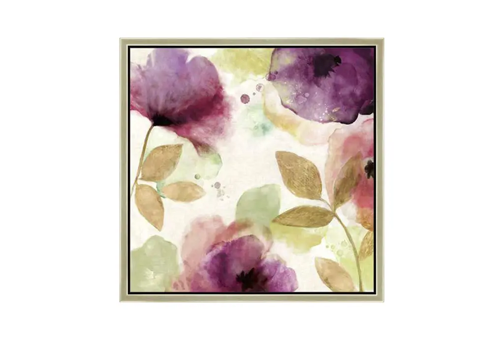 Bring the beauty of nature into your home with the 26X26 Floral Watercolor With Champagne Frame. This stunning piece features a vibrant floral watercolor print in shades of purple and green, adding a touch of farmhouse charm to any room. The square orientation and champagne frame make it a versatile addition to your bedroom, dining room, living room, or office.