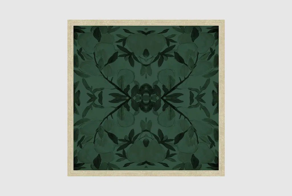 Add a touch of sophistication to your dining room, kitchen, or living room with the 26X26 Moody Fruit Evergreen With Gold Frame. This stunning traditional framed art piece features a rich green canvas accented by a gold frame, making it a perfect addition to any space. Its square orientation makes it easy to incorporate into your existing decor.