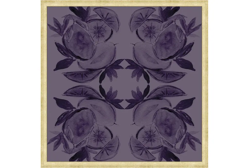 Enhance your living space with the 26X26 Moody Fruit Merlot With Champagne Frame. This traditional framed art piece features a captivating purple hue that adds a touch of sophistication to any room. Perfect for the dining room, kitchen, or living room, this square canvas print is sure to be a conversation starter.