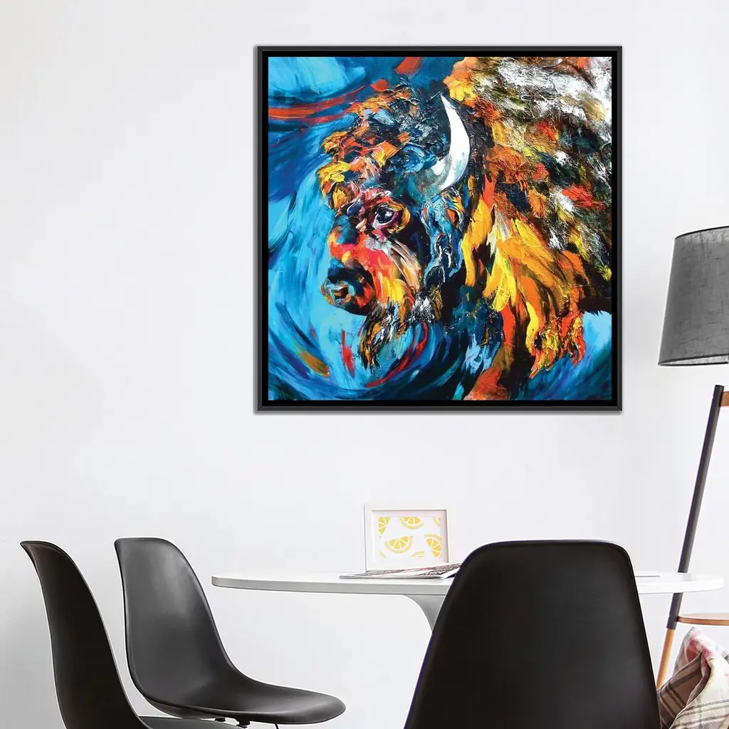 Bring color and character to your home with The Mighty Elephant framed art. This piece features a vibrant impressionistic depiction of an elephant, with hues of blue and red beautifully displayed on canvas. The rustic white frame adds a touch of charm, making it a standout addition to any room.