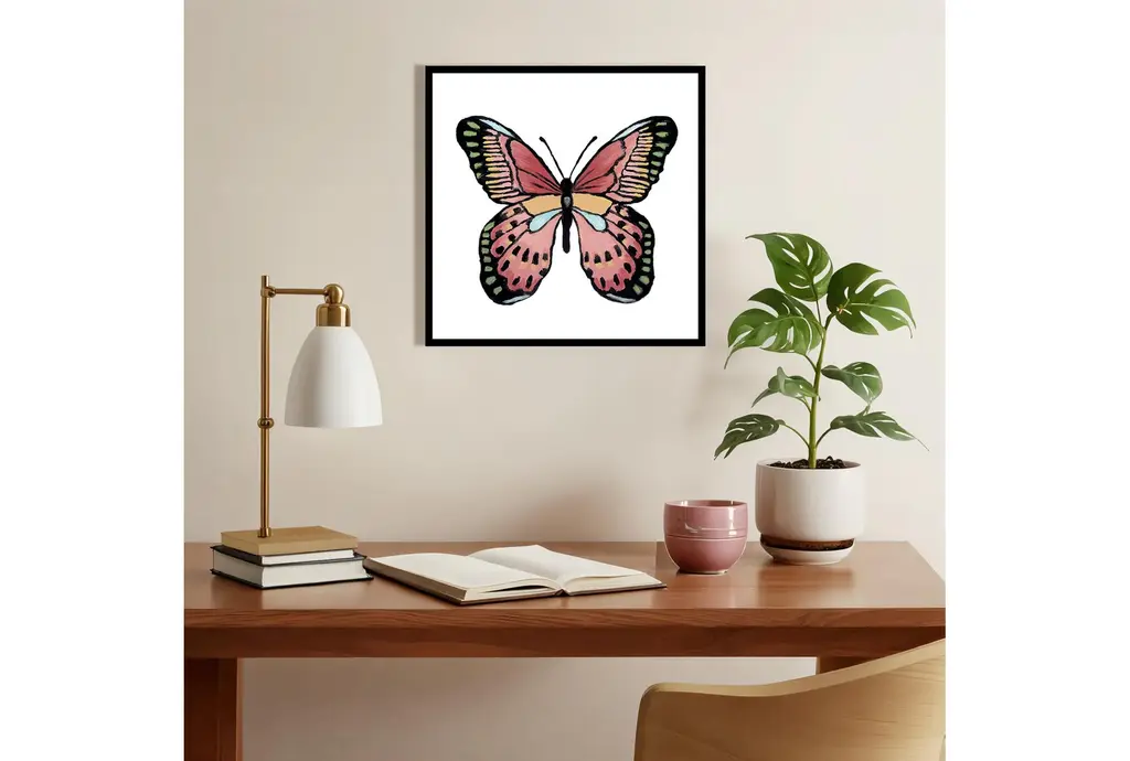 26x26 Vibrant Pink Butterfly With Black Frame | Framed Art | Animals | Print