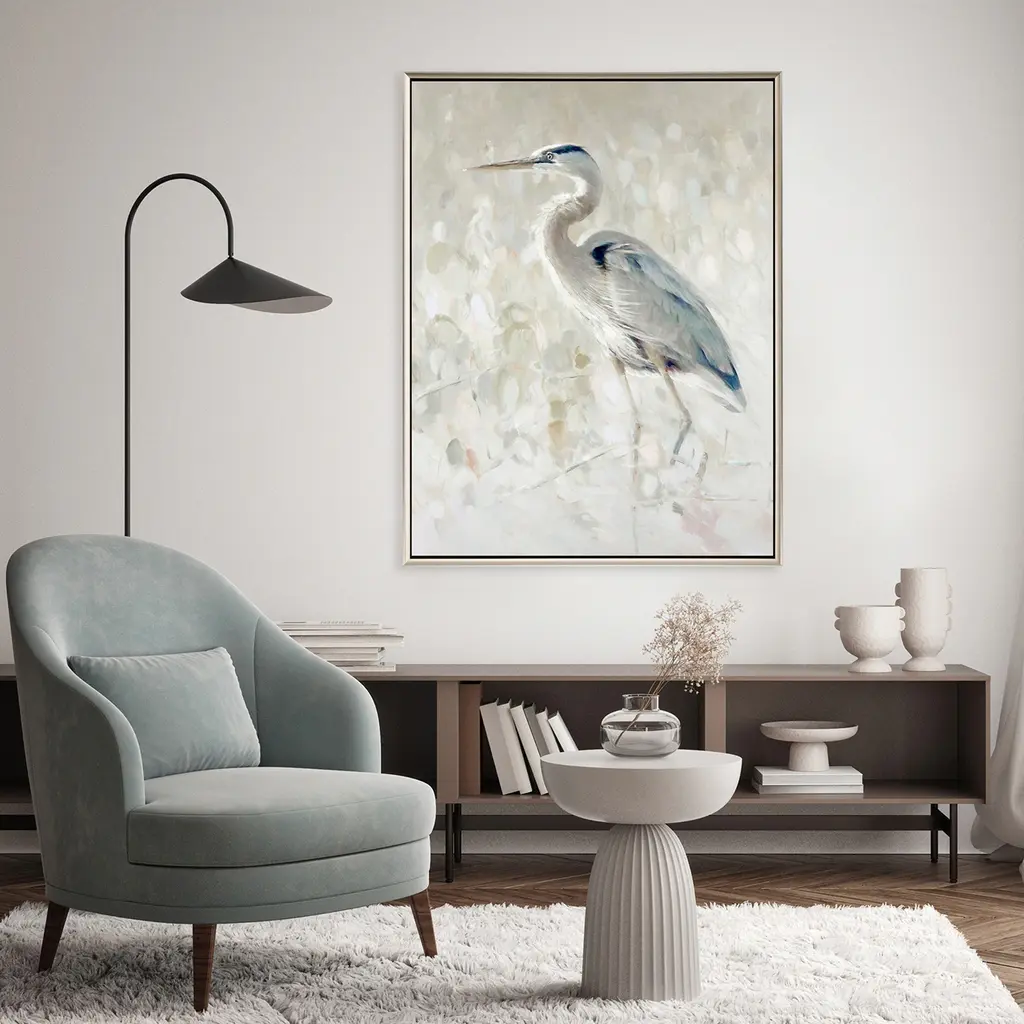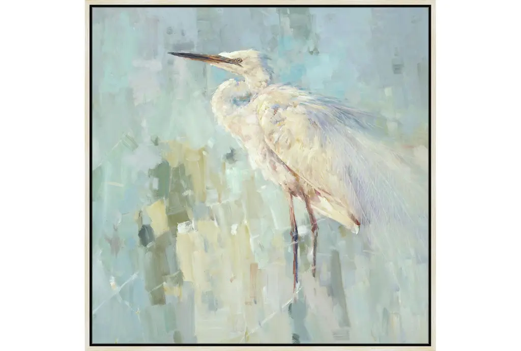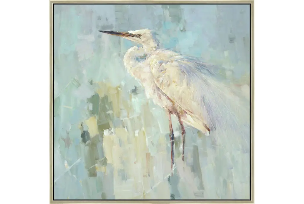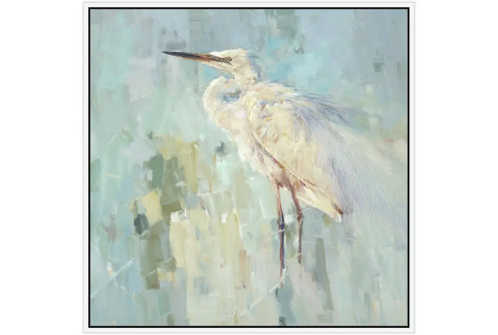 Elevate your home decor with the stunning 26x26 White Heron framed art. This beautiful piece features a serene depiction of a heron, bringing a touch of nature into any room. The art print is crafted on canvas and comes with a sophisticated champagne frame, making it a perfect addition to your coastal-themed space.