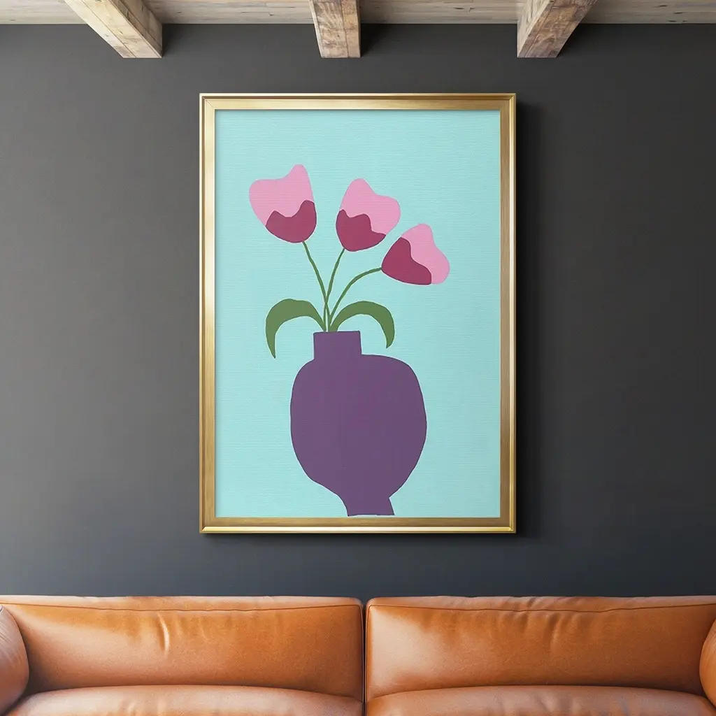 26x32 Modern Floral Ii With Gold Frame | Vertical | Still Life | Print | Framed Canvas Art