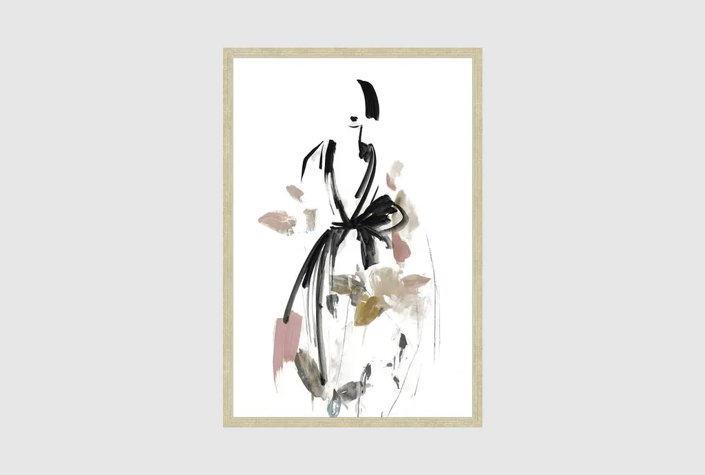 Enhance your living space with the 26X38 Fashion Floral II framed art. This piece features a figurative floral design in a traditional style, incorporating black, grey, and pink hues. Presented in a sleek white frame, it offers a sophisticated touch to any room.