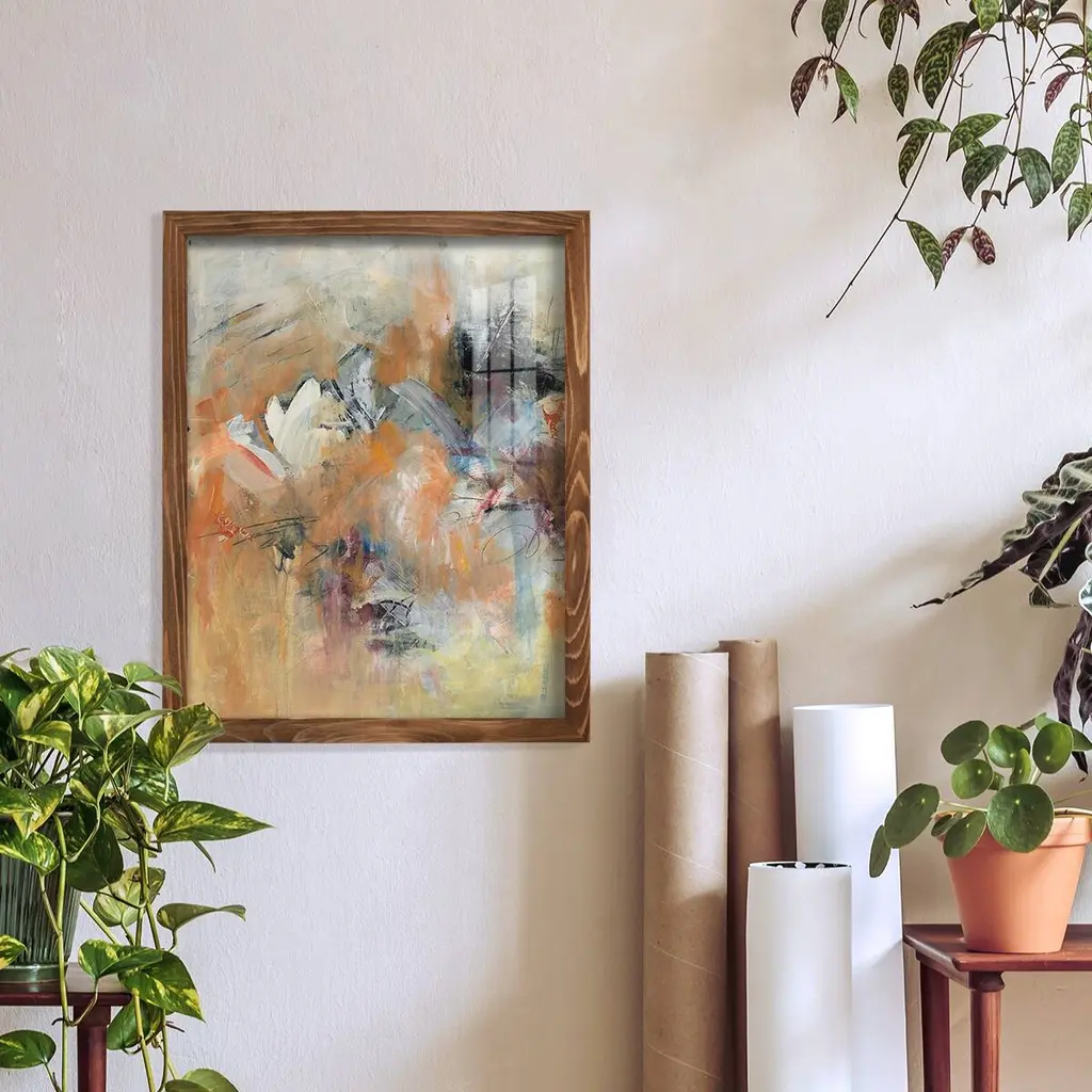 26"x38" Vibrant Abstract I With Brown Floater Frame | Vertical | Framed Canvas Art | Print