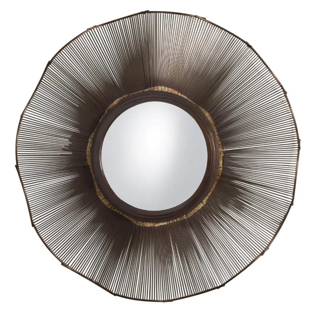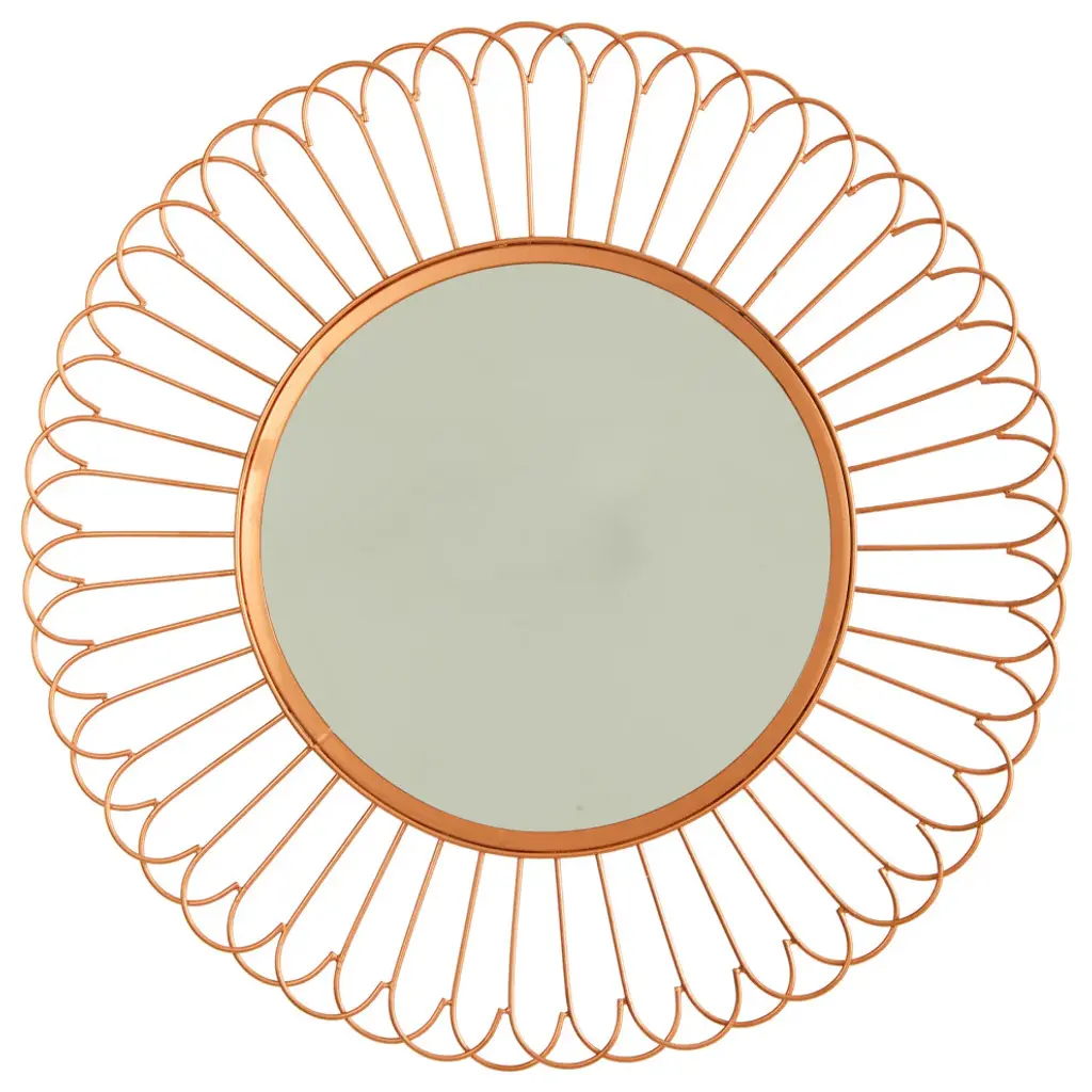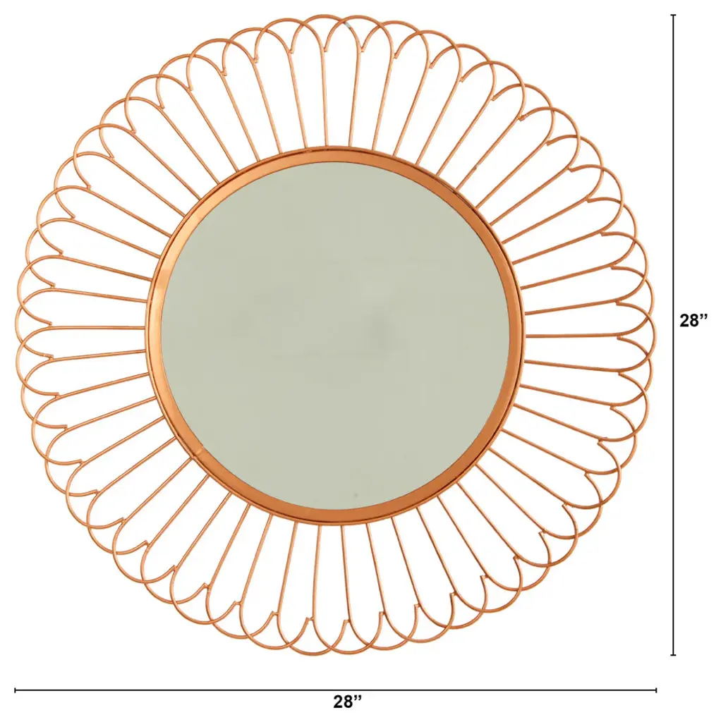 Inspired by modern design, this Metal Loop Wall Mirror lets the sun in. Metal in a brass finish has a circular mirror in the center. Hang above a table for a unique, elevated look. Trendy in design, this wall accent will look great in any room, creating a focal point for all who lay eyes. Standing 28", easily hang in any space. Perfect for eclectic, boho, mid-century modern, and transitional home decor styles.