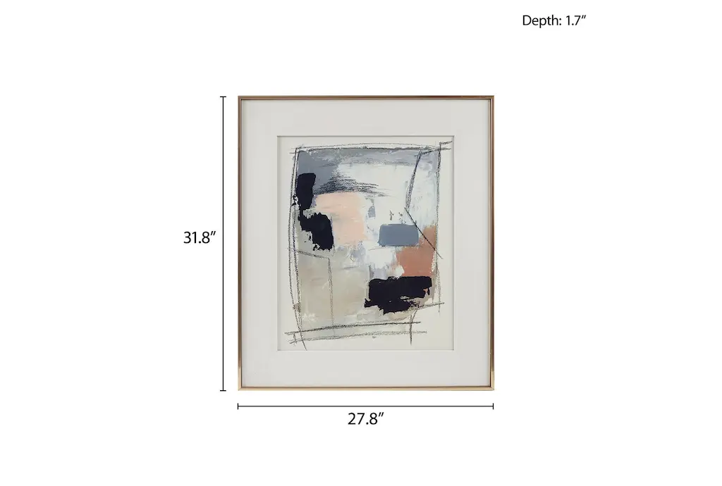 Enhance your living room with the 28X32 Abstract Reveal Framed Art. This modern artwork features a striking blend of neutral and multicolor tones, making it a versatile addition to any space. The vertical orientation and rectangular shape provide a contemporary touch, perfect for small spaces.