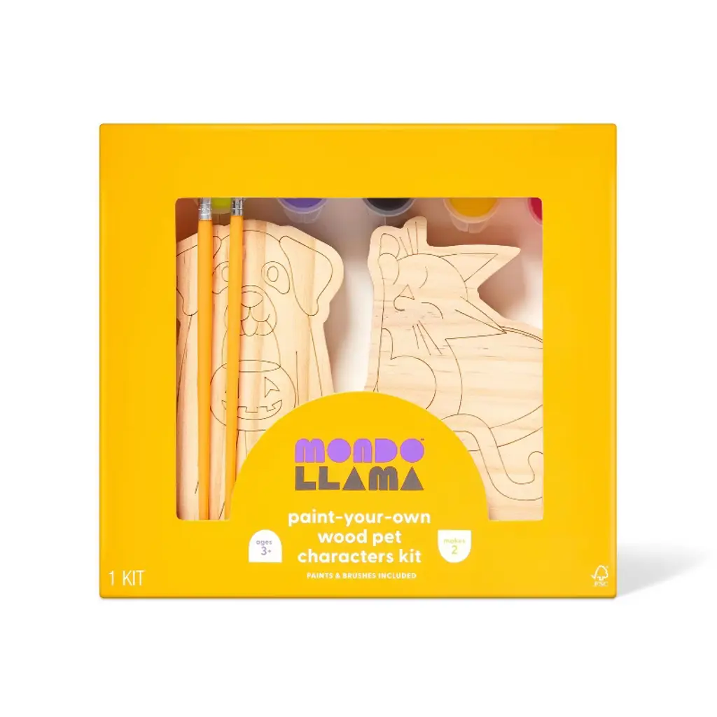 Your kids can get into the Halloween spirit with this Paint-Your-Own Wood Pet Characters Kit from Mondo Llama™. This kit includes two wooden pieces — a ghost dog and a sleeping kitty — for a creepy-cute look. They can paint the wooden pieces with the included paintbrushes and six paint pots, then you can display their finished work on the shelf or mantel to show off their creativity.Mondo Llama™: Find your creativity in the making.