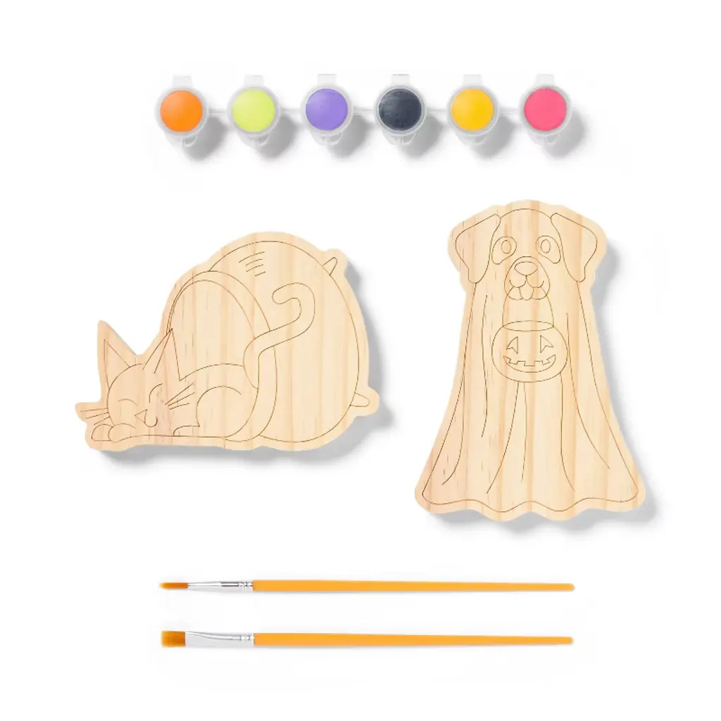 2Ct Halloween Craft Wood Dog And Cat Painting Kit - Mondo Llama™