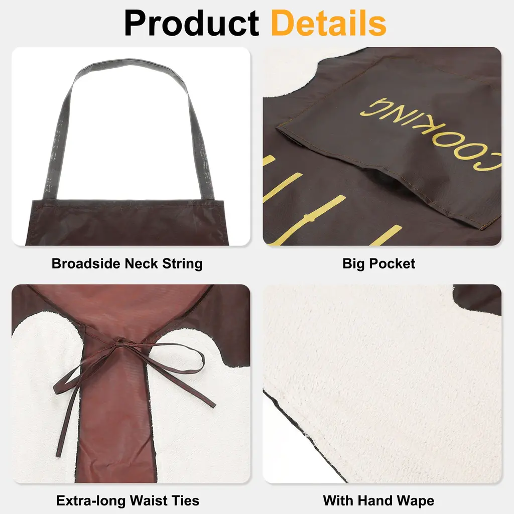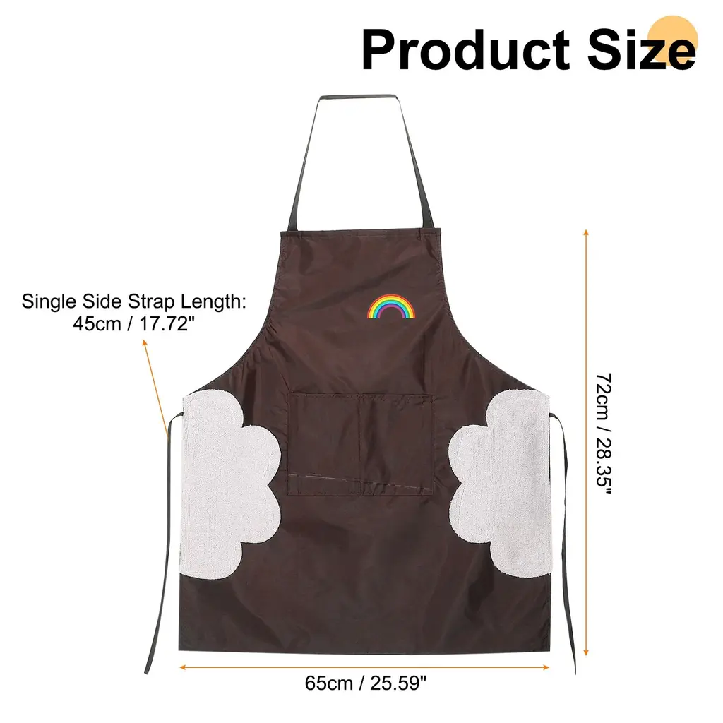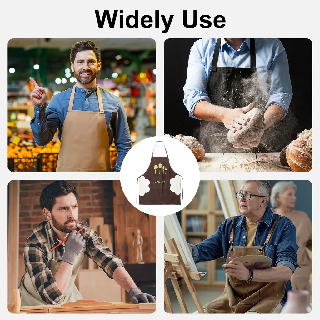 The bib is made of stretch polyester and PVC, which is strong, breathable, partially waterproof, prevents minor spills and oil penetration, and has a smooth surface that does not easily adhere to dirt. Its wrinkle-resistant properties can maintain its overall beauty and are suitable for long-term use.The hang neck design ensures that the apron fits you securely and does not slip off, improving your work efficiency. The double pocket design provides enough storage space for you to take items at any time. Convenient and practical waist drawstring, suitable for people of different body shapes.The bib apron ensures your body is widely covered to prevent your clothes from getting dirty. Can be used for cooking, baking, grilling, painting, and pottery. Suitable for chefs, baristas, kitchens, bartenders, bistro staff, grills, etc.Aprons need to be machine washed in cold water, dark colors washed separately. Avoid using bleach and tumble dry only on low heat. Do not iron or dry clean the apron to maintain its quality and durability.