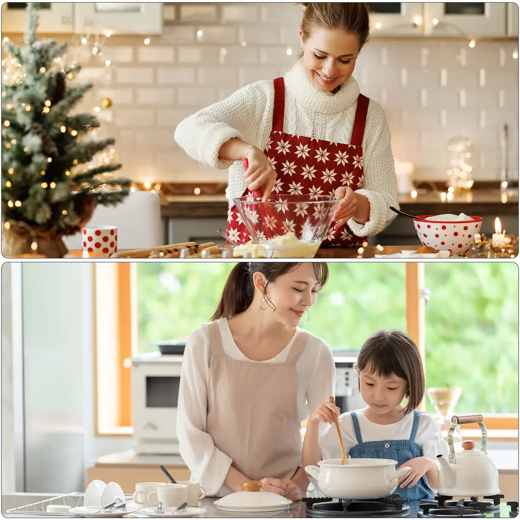 2Pcs H Style Apron Kitchen Cooking Aprons Artist Painting Apron - Fuchsia
