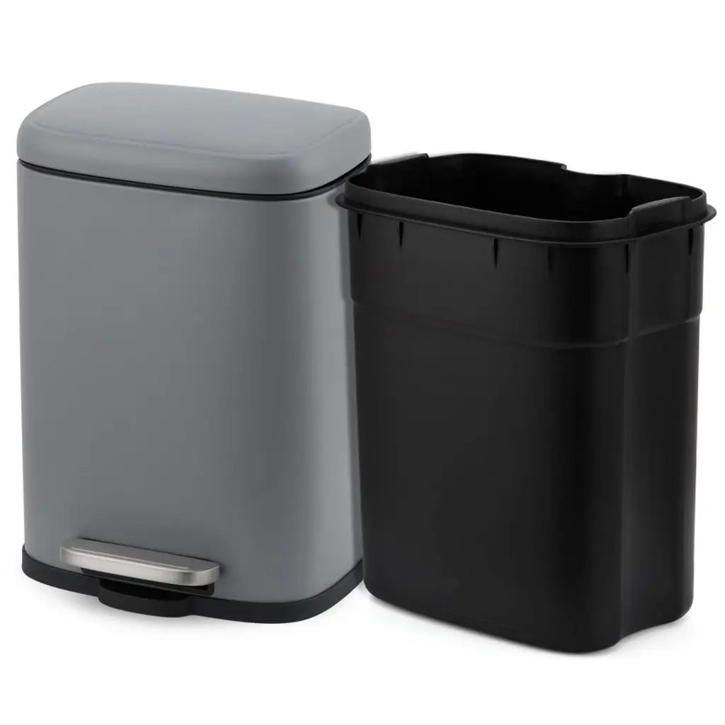 3.2 Gal Stainless Steel Trash Bin with Lid, Soft-Close Pedal, Fingerprint-Resistant Surface - Compact, Smudge-Resistant, Quiet-Closing, Versatile, and Easy-Clean