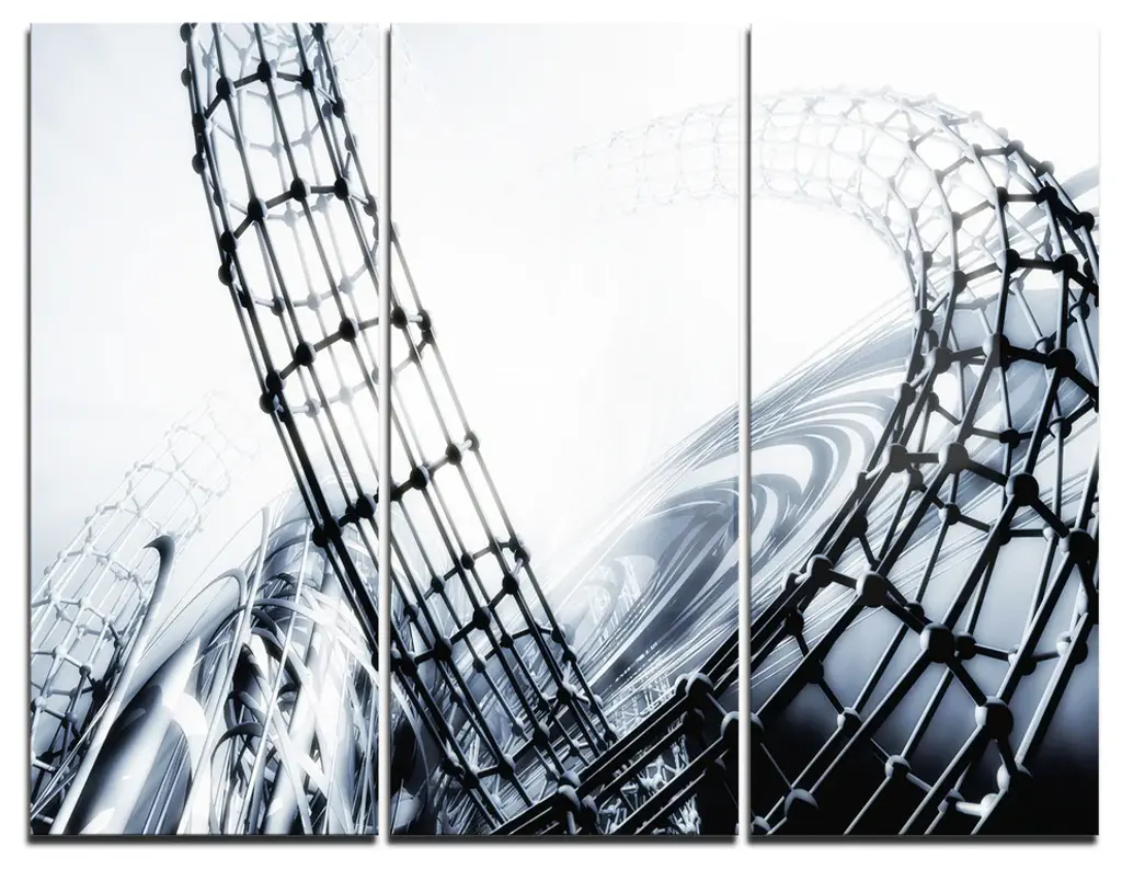 "3-D Abstract Art Black Spiral" Digital Metal Wall Art, 3 Panels, 36"x28"