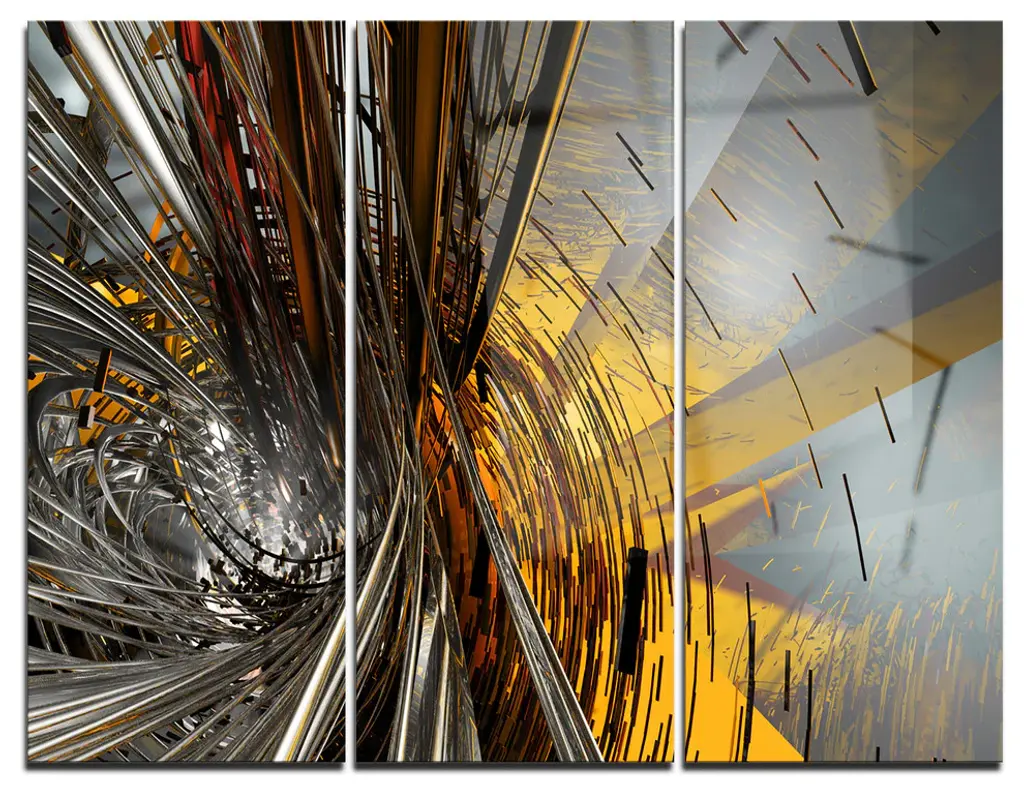 "3-D Abstract Art Green Black" Digital Metal Wall Art, 3 Panels, 36"x28"