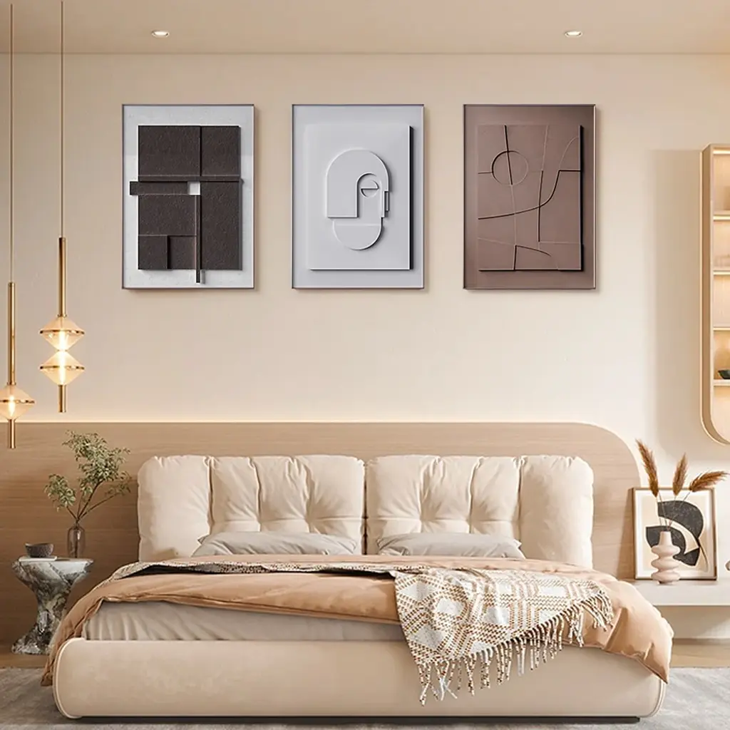 3 Pieces Japandi Canvas Wall Art Print Hanging Wall Decor Set With Rectangle Frame