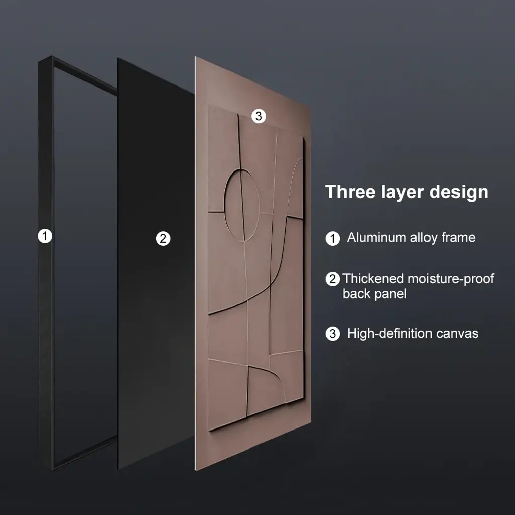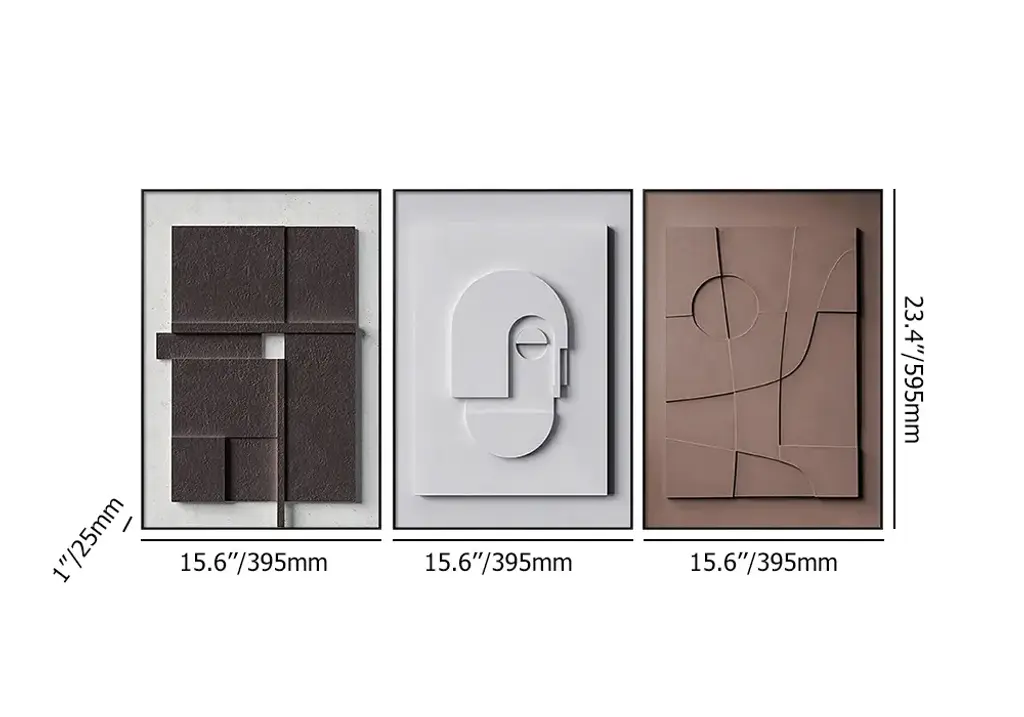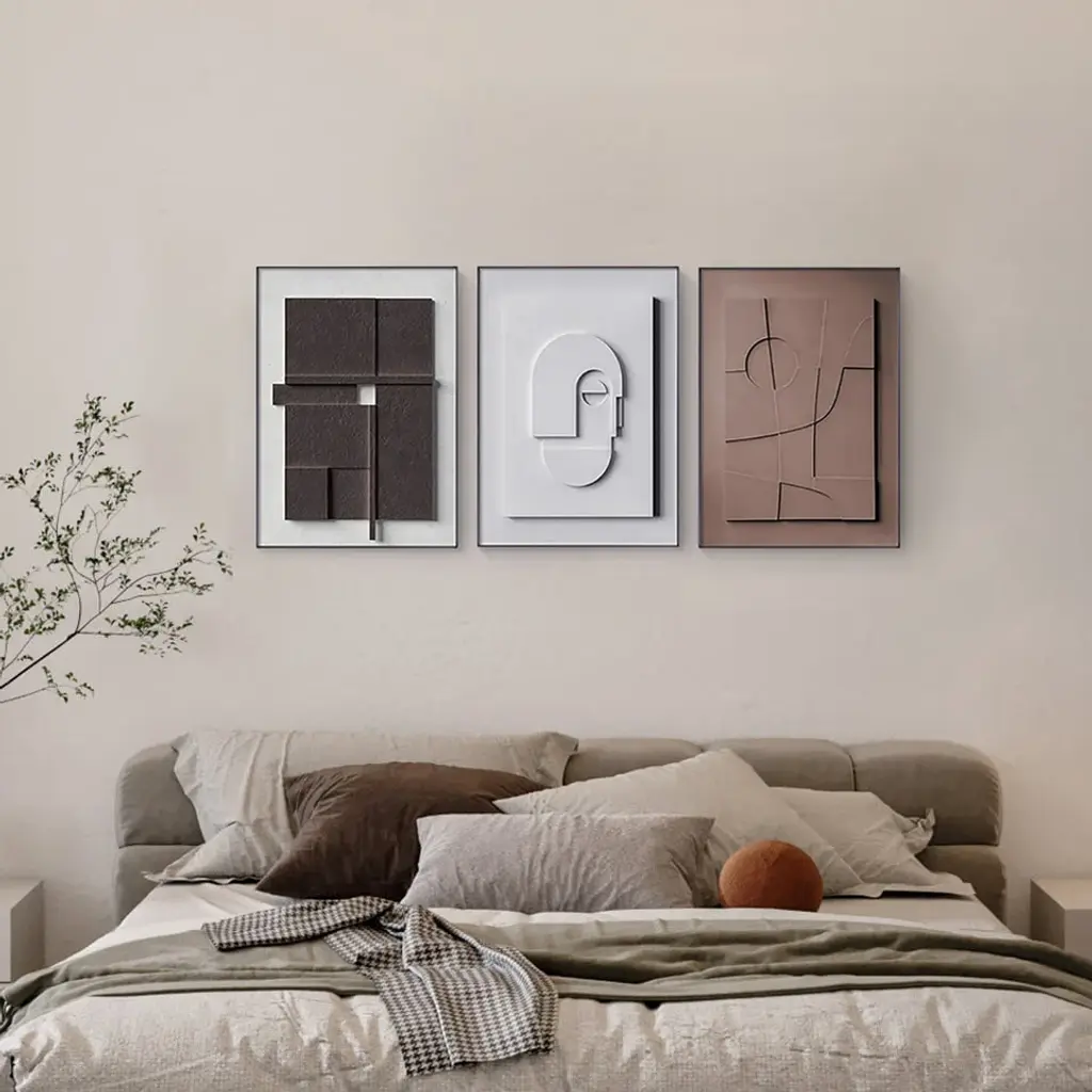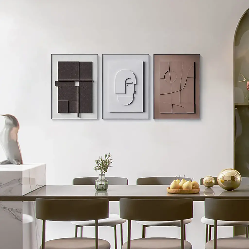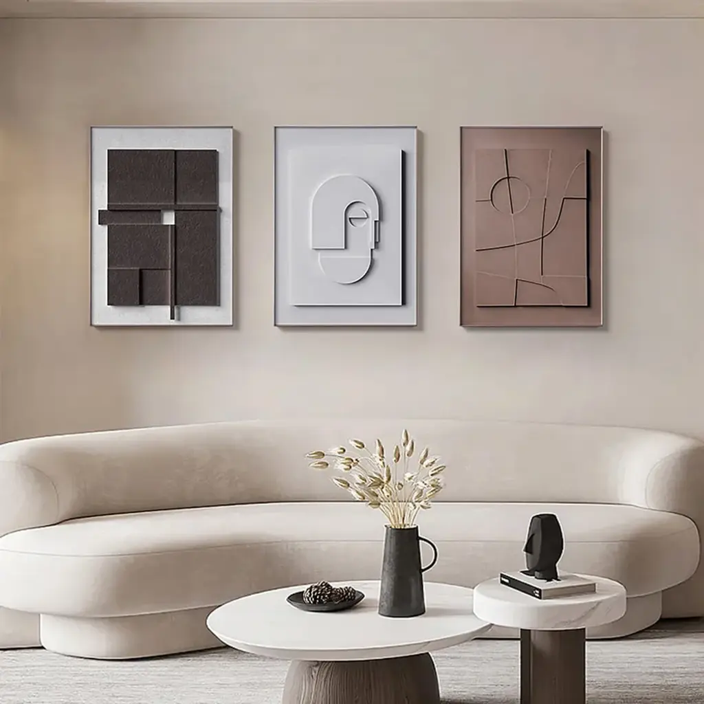 3 Pieces Japandi Geometric Canvas Wall Art Painting Wall Decor Set With Rectangle Frame