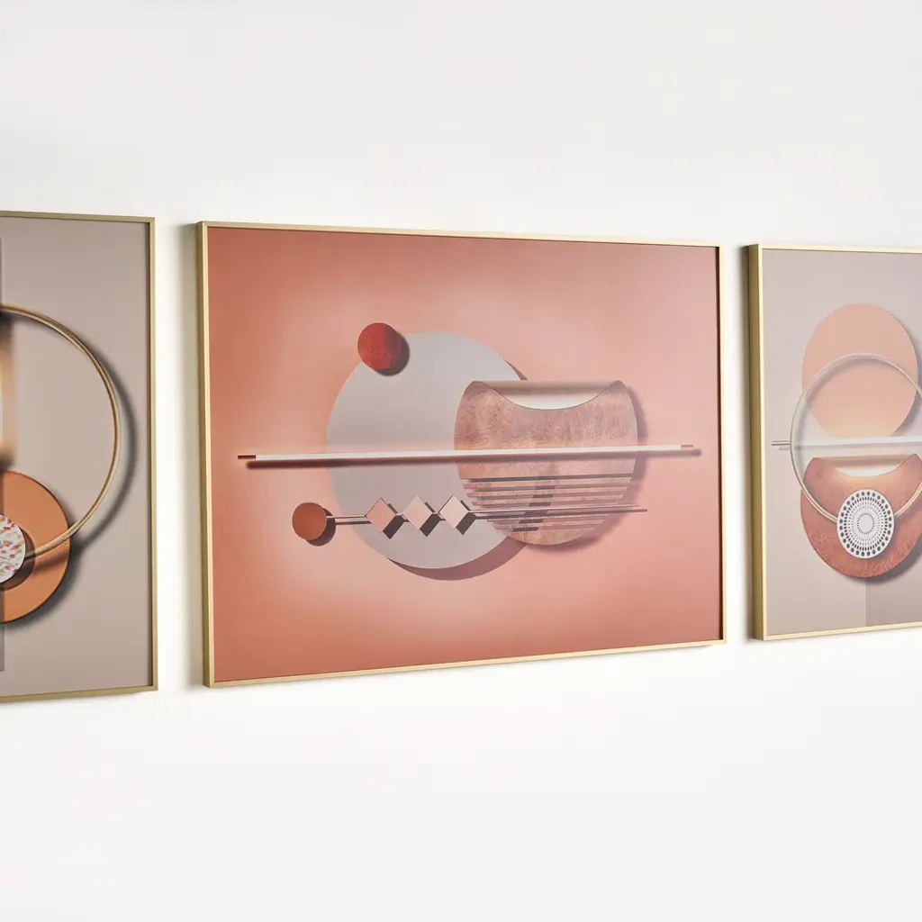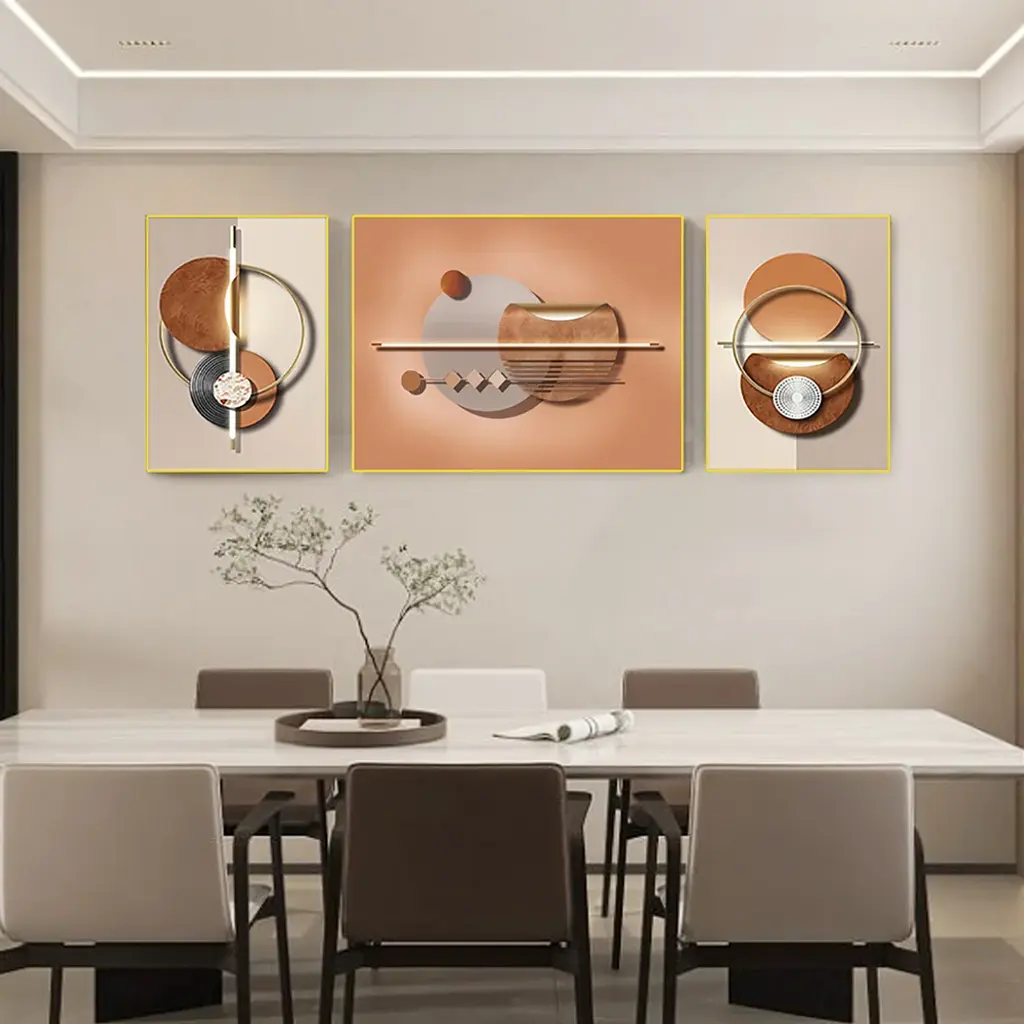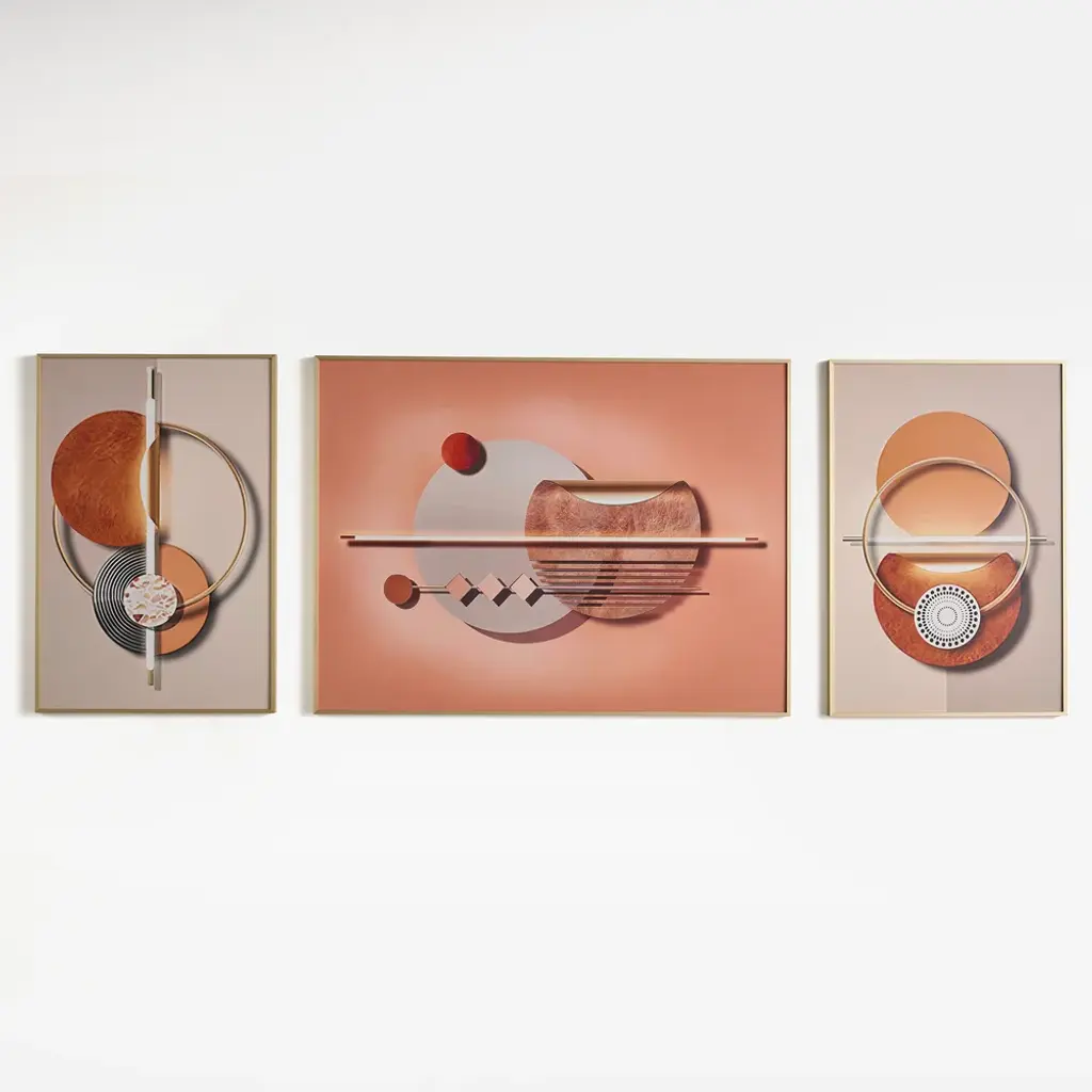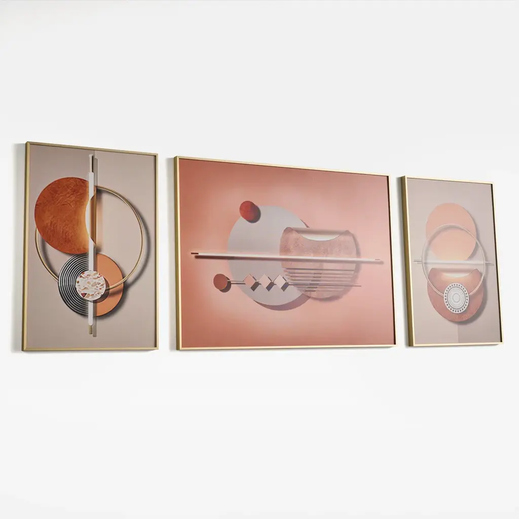 3 Pieces Modern Geometric Abstract Wall Decor Set Canvas Print With Frame Living Room