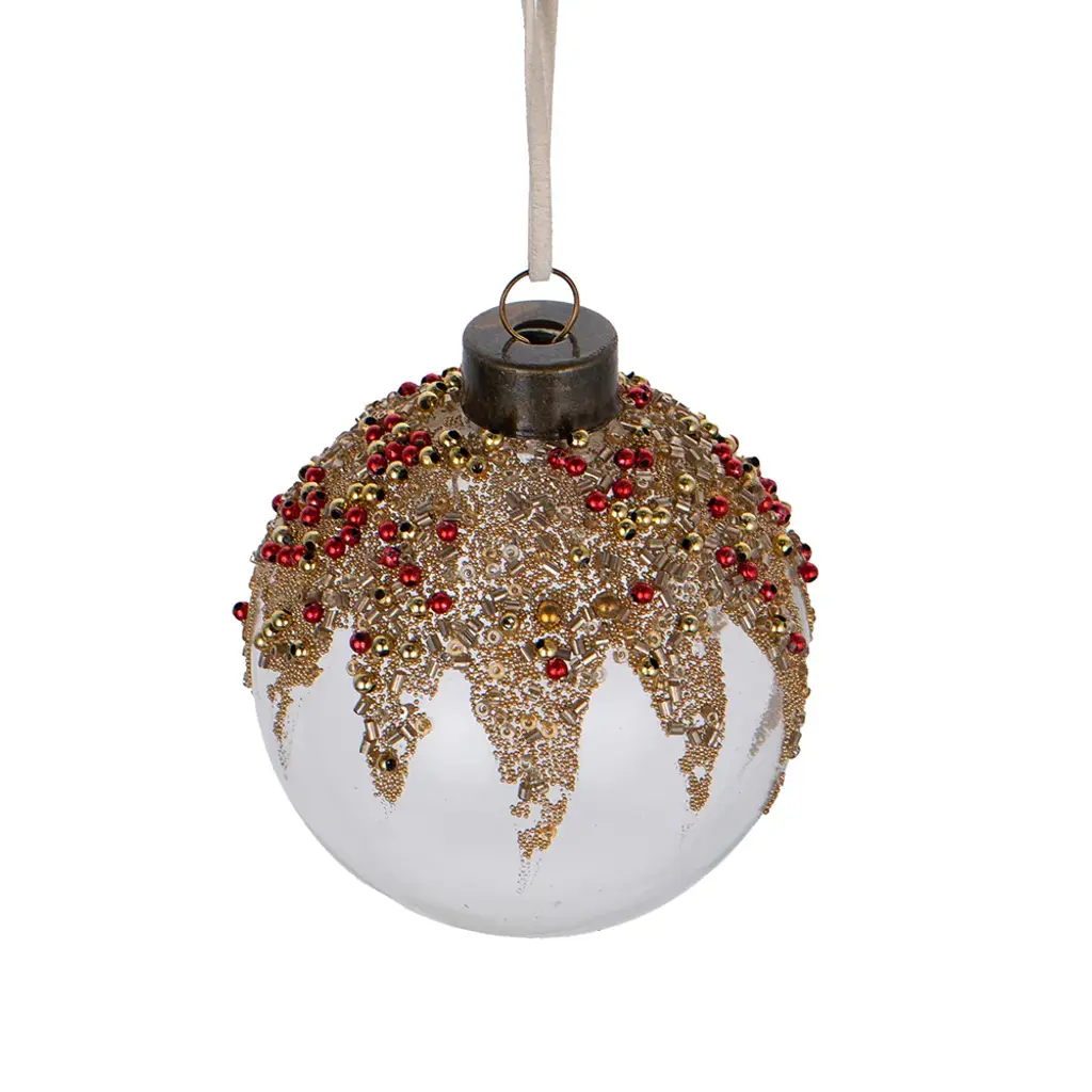 3" Red & Gold Glitter Glass Ball Christmas Ornament, Set Of 12