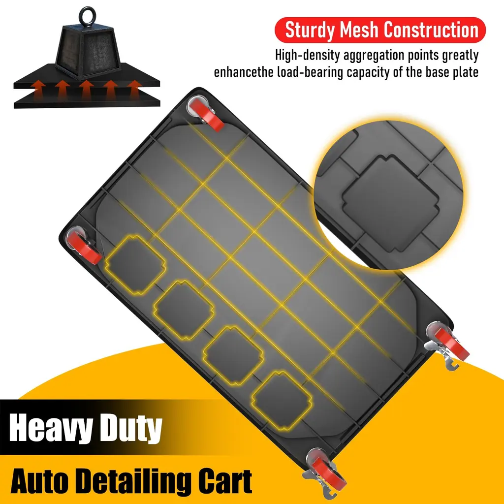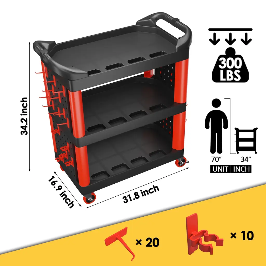 Product Information:FEATURES:【Auto Detailing Cart】3-tier auto detailing cart can help you store a variety of tools, and the unique groove design helps you sort items. You can pick it up anytime you need it. 【Sturdy & Stable】Mobile utility cart is made of high-strength PP material and reinforced all-aluminum bracket. The maximum load capacity can reach 350 pounds. 【Super Customized Design】Our auto repair truck is equipped with two removable side panels, multiple hooks and 12 bottle grooves to meet the needs of the work. There are also two lockable universal wheels for easy use at work. 【Multi-Scenario Application】Whether it is a garage, a repair shop or a utility room, this car is an excellent solution for cleaning, maintenance, polishing, painting, etc.