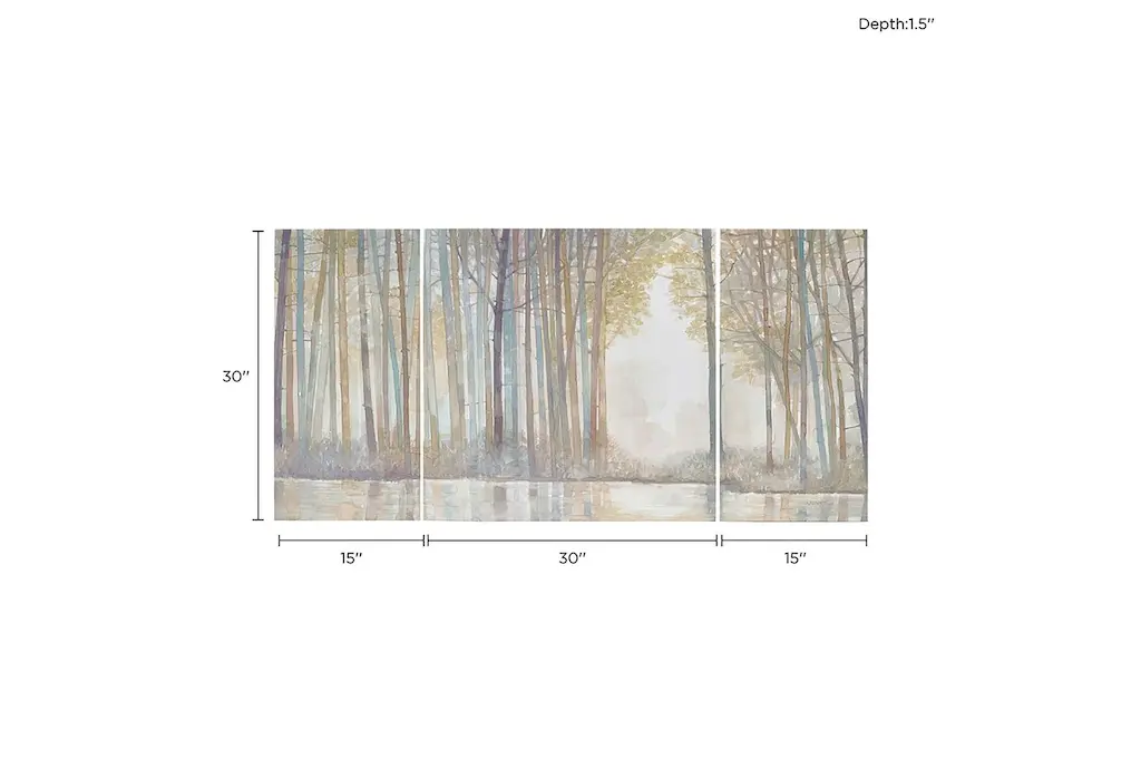 Bring the beauty of nature into your home with the 30X30 Forest Reflections Set Of 3. This stunning canvas art set features a serene forest scene that will add a touch of tranquility to your bedroom or any living space. Each piece captures the timeless appeal of traditional landscapes with soft, light colors that create a calming atmosphere.