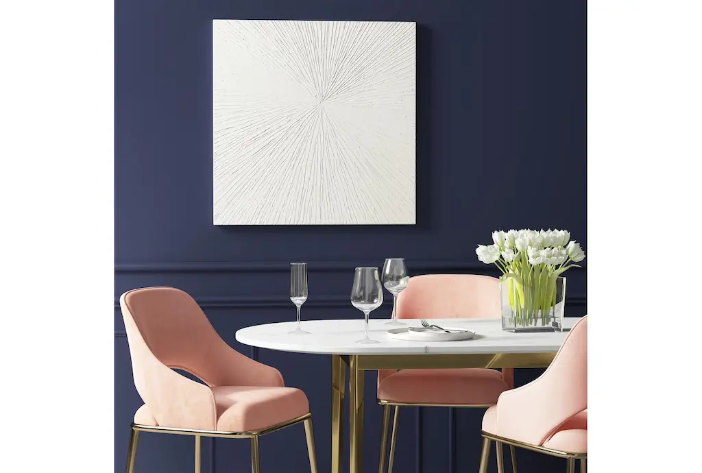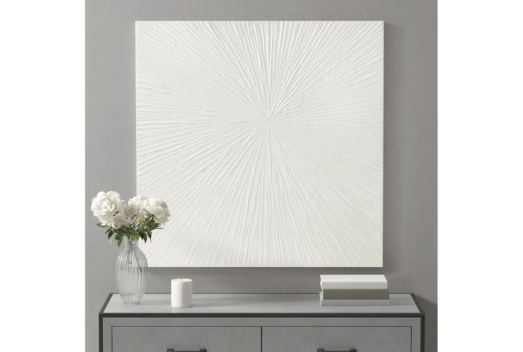 Enhance your hallway with the 30X30 Natural White Dimensional MDF Sunburst Wall Decor. This modern piece features a striking sunburst design that adds a touch of sophistication to any space. The neutral white color complements a variety of decor styles, making it a versatile addition to your home.