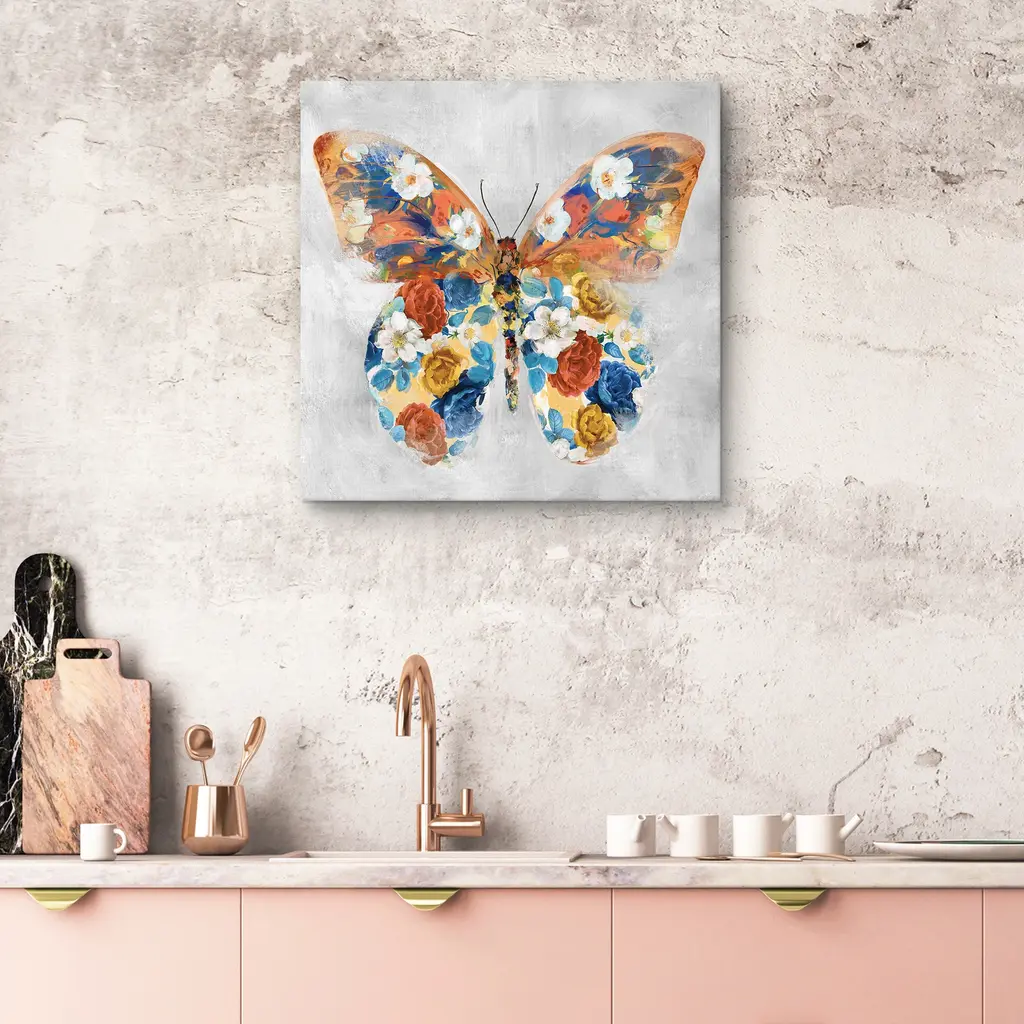 Enhance your nursery or living space with the 30X40 Butterflies With Gallery Wrap Canvas. This traditional vertical canvas art features vibrant yellow and red butterflies that bring a touch of nature indoors. Proudly made in the USA, this piece is perfect for adding a splash of color and life to your home.