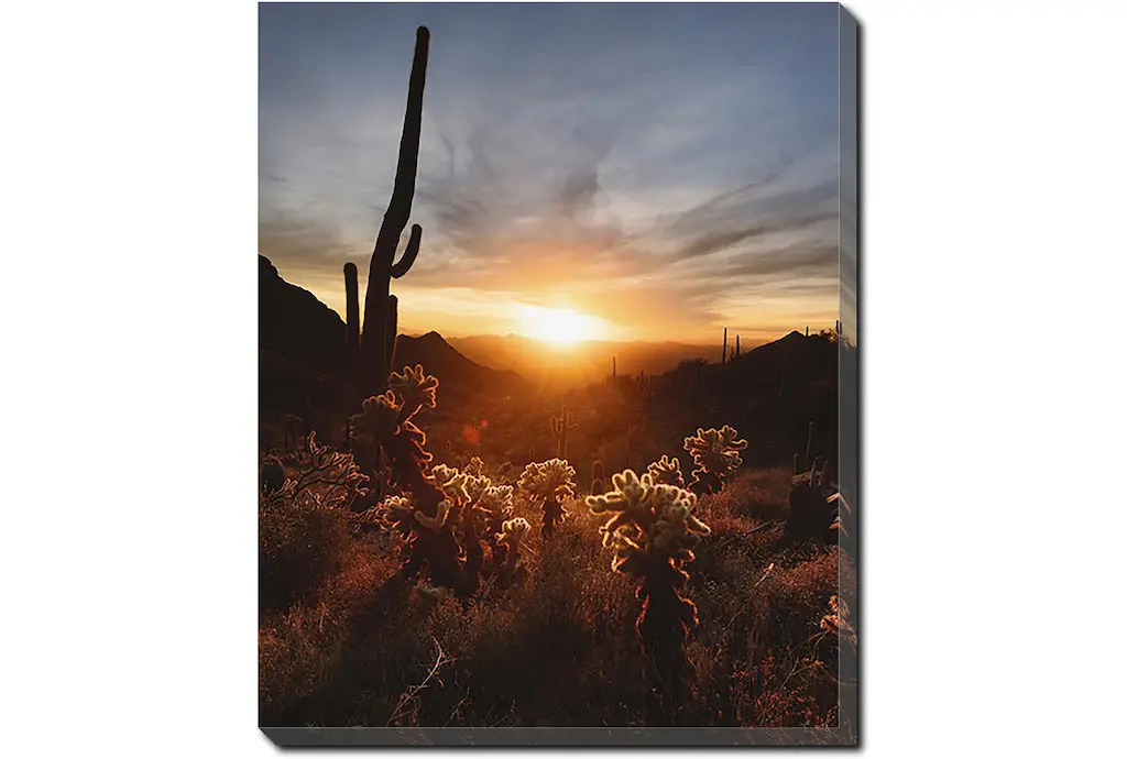 30x40 Cactus Sunset With Gallery Wrap Canvas | Vertical | Scenic | Made In The Usa | Photography | Canvas Art