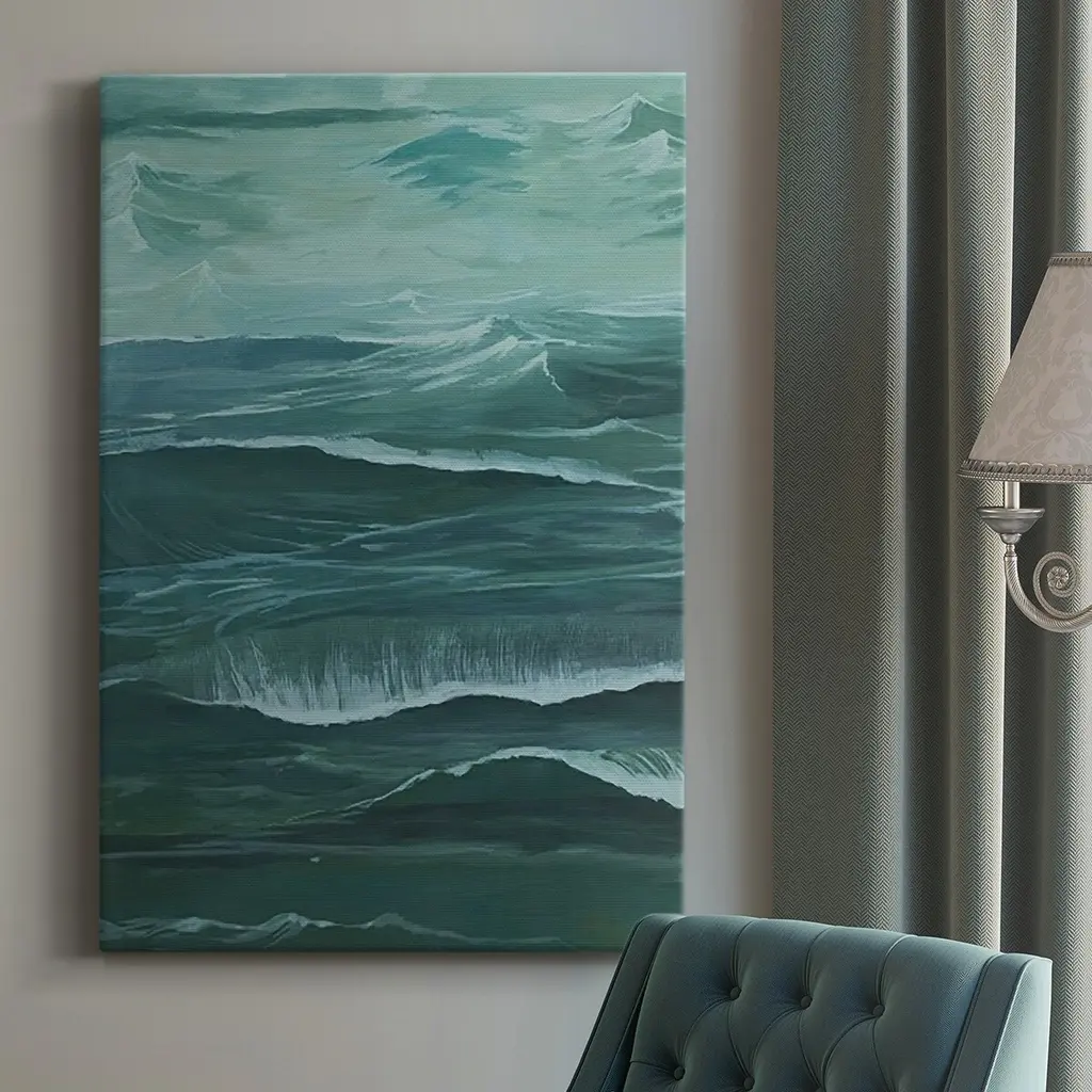 Bring the beauty of the ocean waves into your home with the 30X40 Laguna Waves Rectangle framed art. This stunning piece features a blend of blue, green, and white colors that capture the essence of coastal living. Made in the USA, it comes in a white frame that complements any traditional decor.
