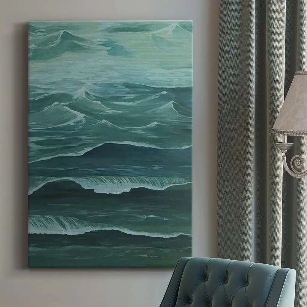 Bring the beauty of the ocean into your home with the 30x40 Laguna Waves framed art. This stunning piece captures the dynamic motion of waves in blue, green, and white hues, perfect for adding a touch of coastal charm to any room. Made in the USA, this artwork is printed on canvas and comes complete with a sleek black frame.