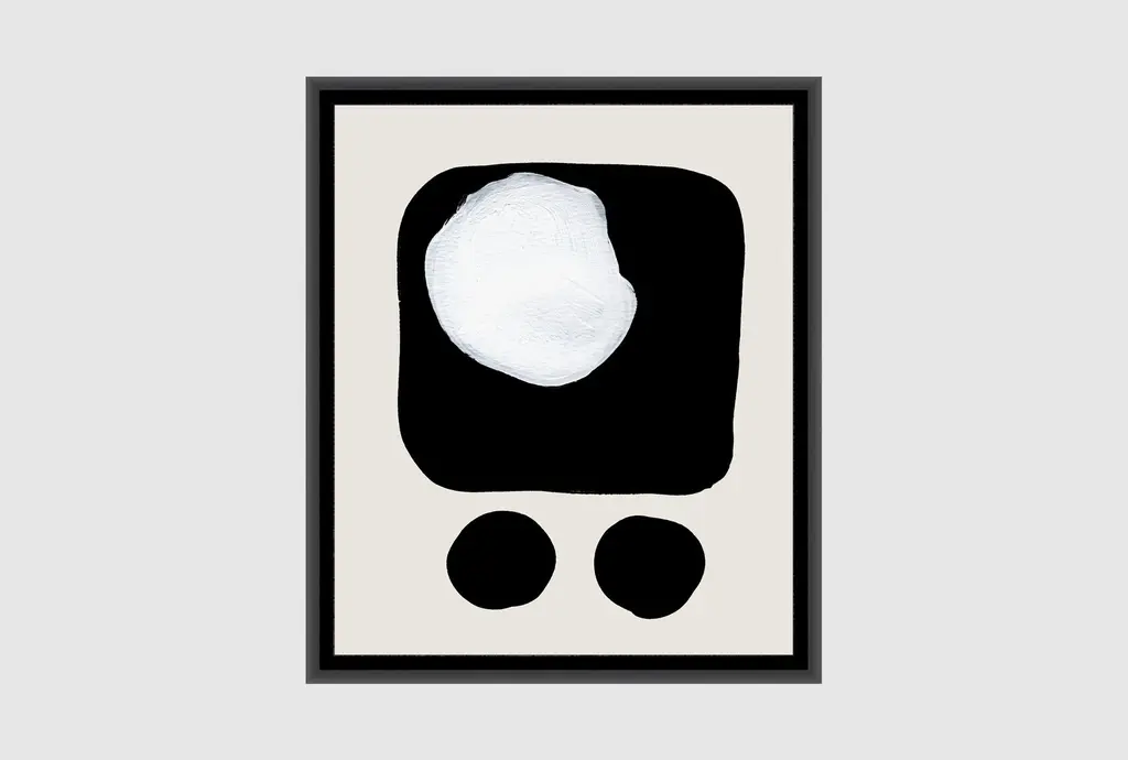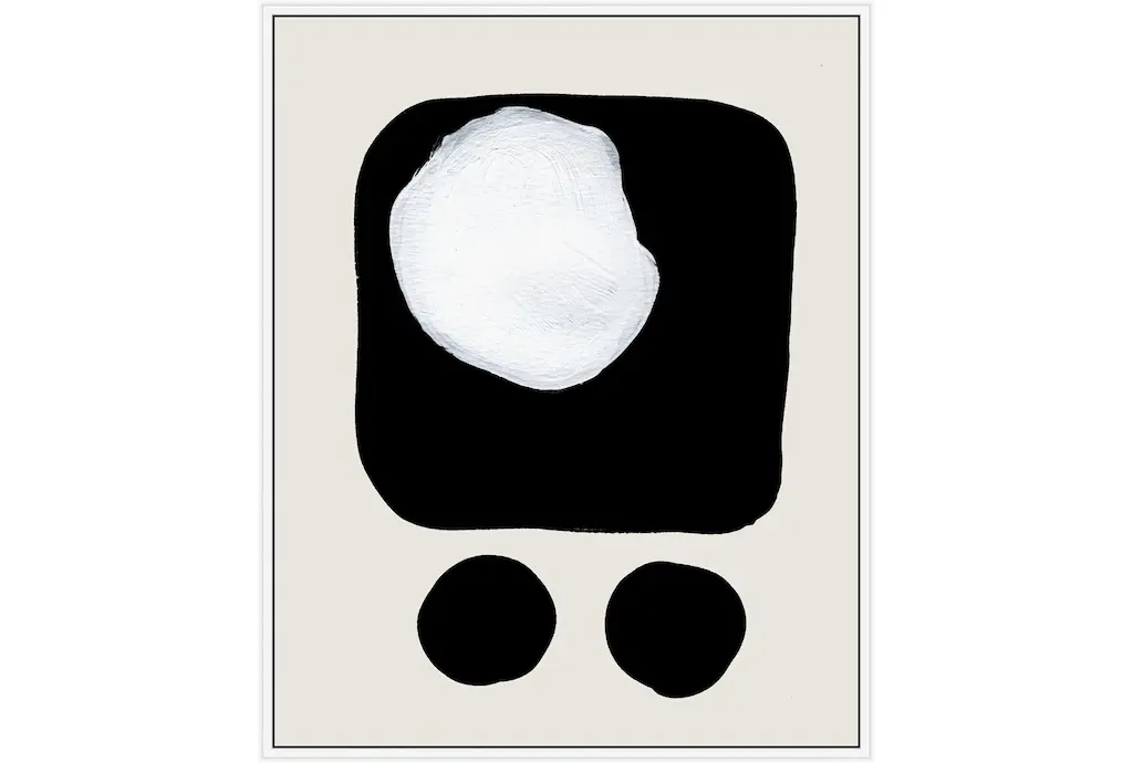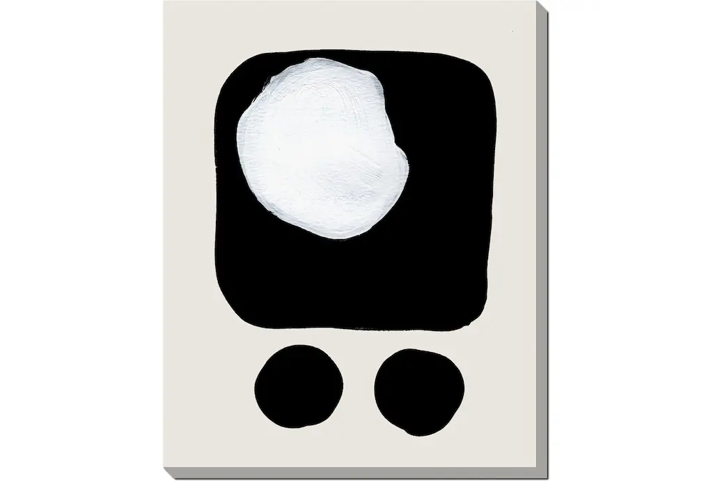Enhance your living space with the 30X40 Modern Objects I Gallery Wrap Canvas. This vertical canvas art print features a striking abstract design in black, white, and beige, perfect for adding a touch of modern style to any room.
