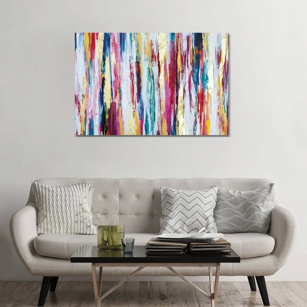 30"x40" Multicolor Modern Abstract With Gold Frame | Framed Canvas Art | Horizontal | Print