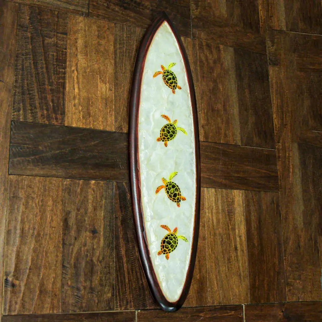 31 In Wood And Capiz Four Turtles Hand Carved Decorative Surfboard Wall Decor