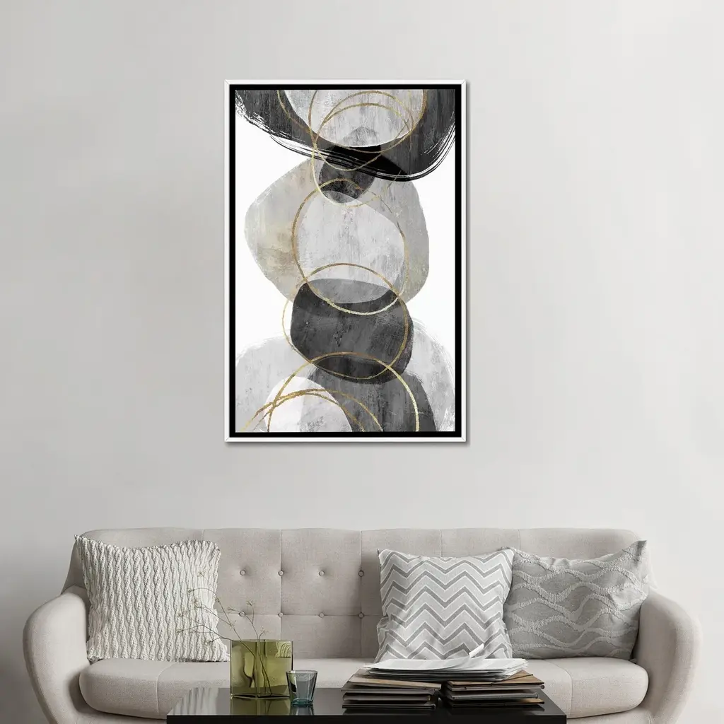 32x42 B&w Circles With Silver Frame | Vertical | Made In The Usa | Framed Art | Print | Abstract