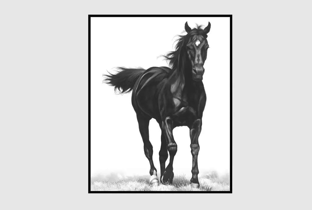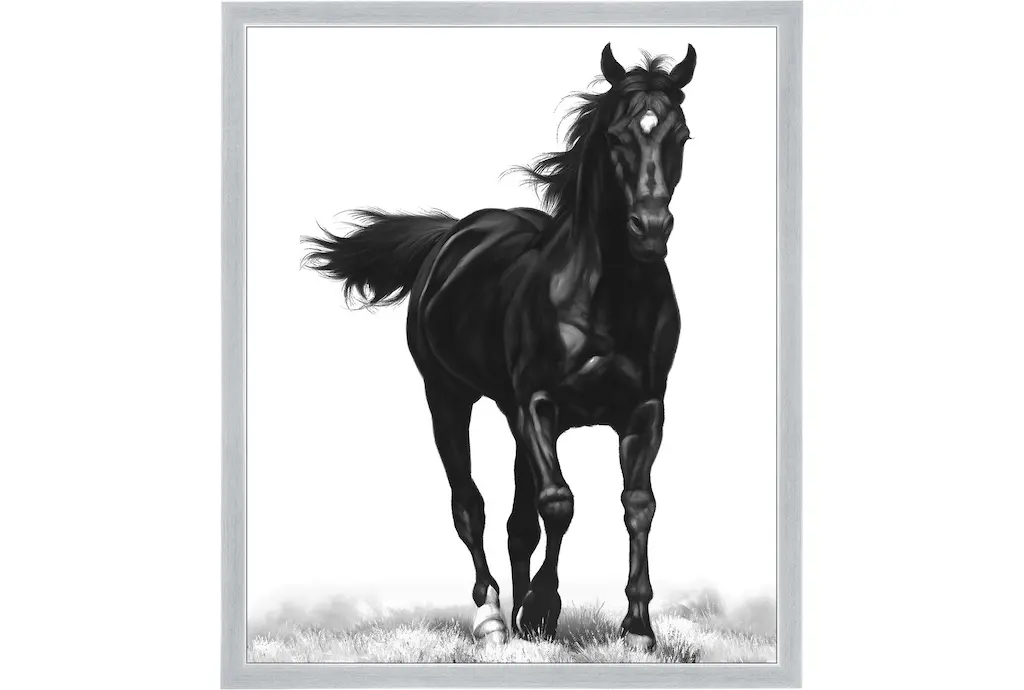 32x42 B&w Strong Stallion With Silver Frame | Framed Art | Animals | Print | Made In The Usa | Vertical